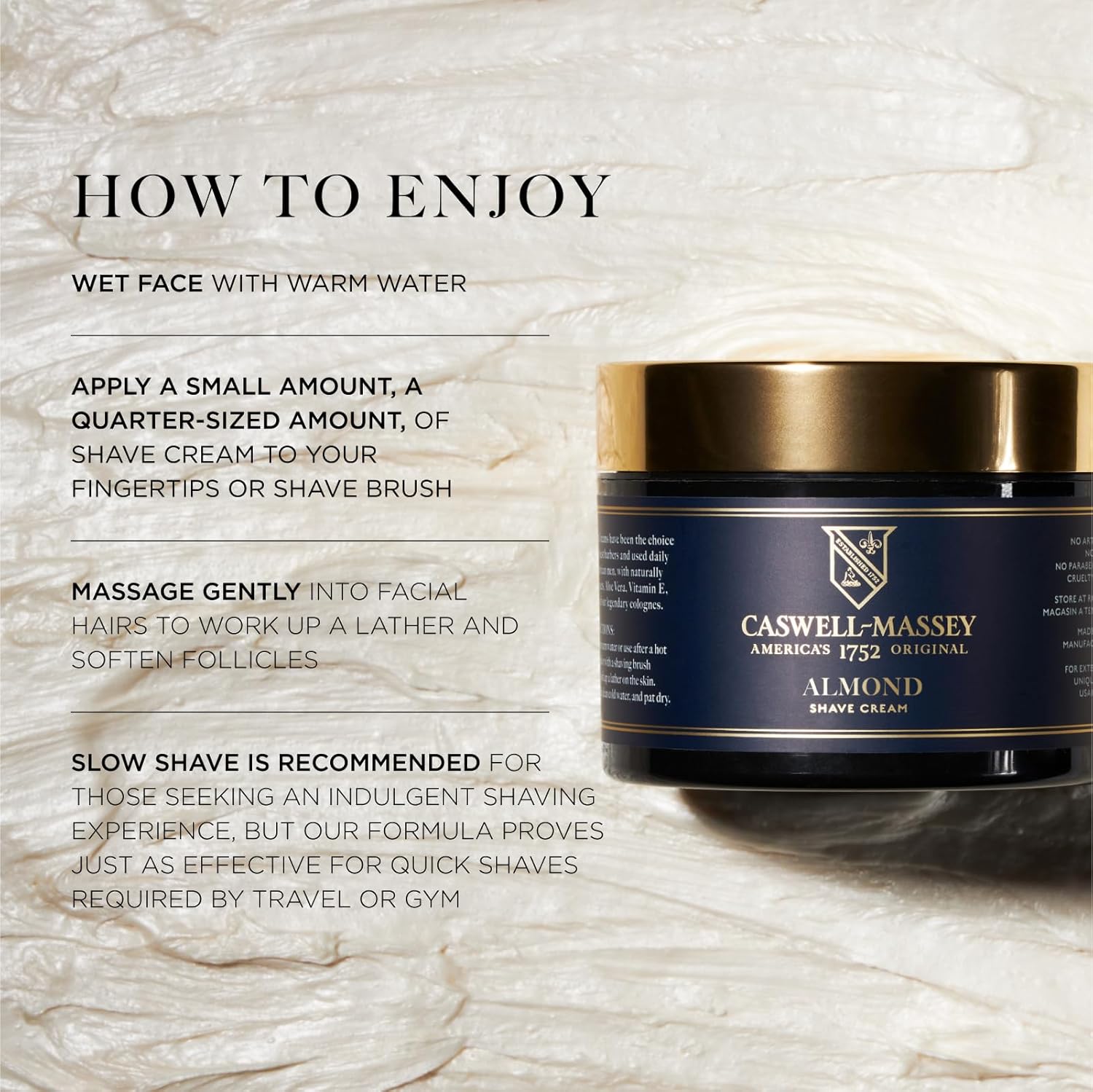 - How to Enjoy: Wet face with warm water and apply a small amount of shave cream for men to your fingertips or shave brush. Massage gently into facial hairs to work up a lather and soften follicles and select your shaving tool of choice.
