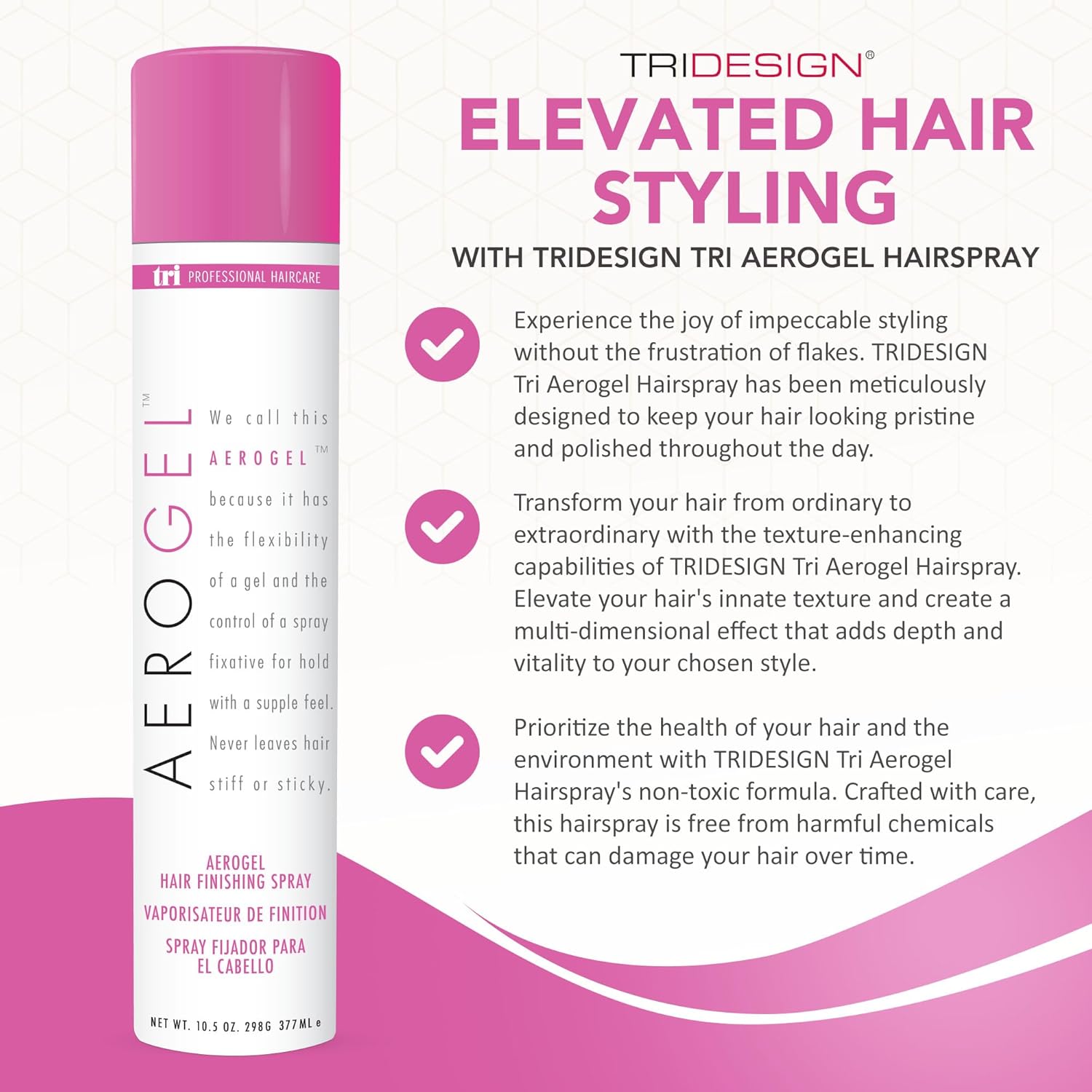 TRI Design Aerogel Hairspray - Hair Finishing Spray for Styling, Volumizing and Holding Curly Hair with Flexible Hold - For Women and Men - Pack of 3 (10.5 oz)