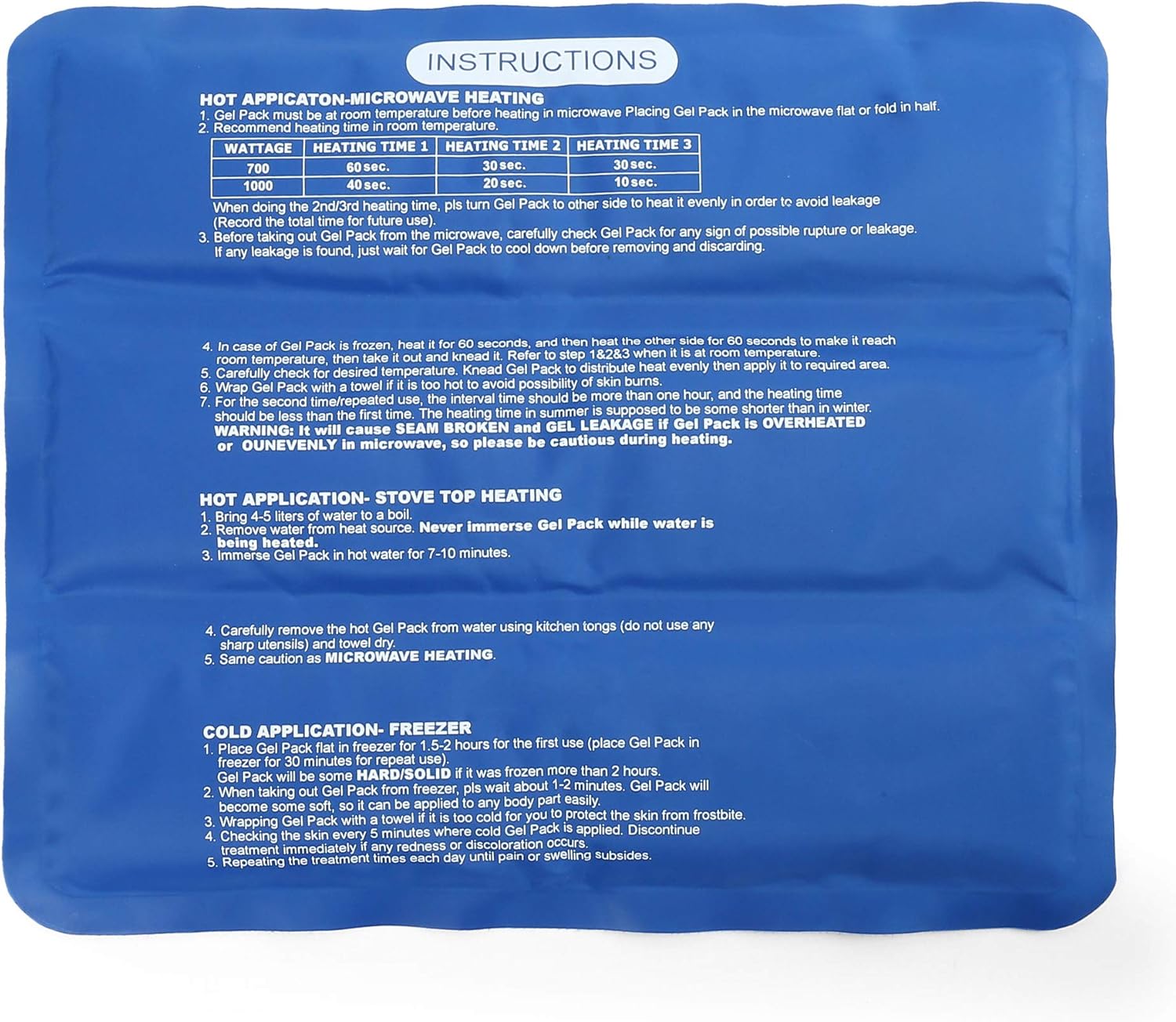 - Safe & Reusable & Large Gel Pack: Latex-free and non-toxic ice pack, safe for all ages to use; keep flexible even at 0°F(-18℃); 13.8" x 11.8" gel pack gives a larger coverage to body parts, keeps warm and cool longer than other small ones