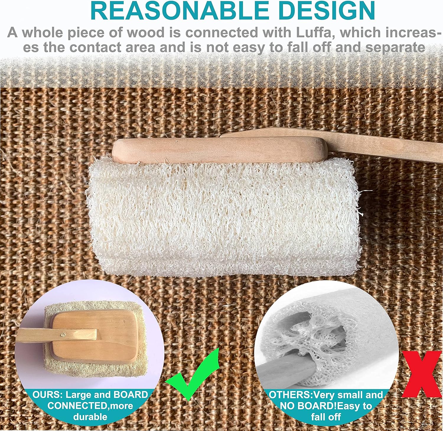 Natural Exfoliating Loofah luffa loofa Bath Brush On a Stick - with Long Wooden Handle Back Brush for Men & Women - Shower Sponge Body Back Scrubber Pack of 1