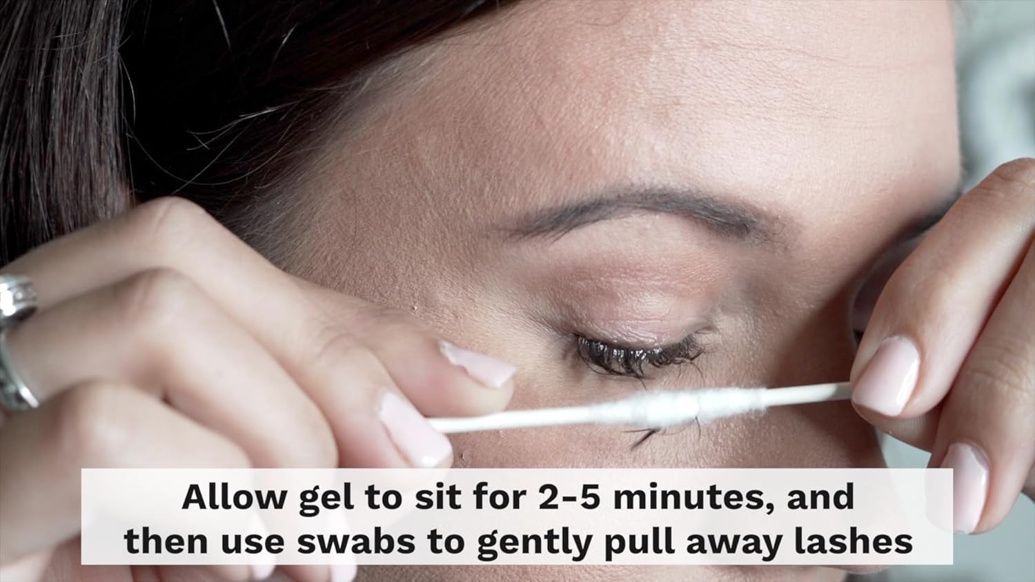 - Apply ½ mm Above Eyeline - Apply our eyelash extension gel remover slightly above the eyeline and be sure not to get any in you or your clients. If the eyelash remover gel gets into eyes, you must rinse eyes immediately with warm water to flush out any eyelash gel remover.