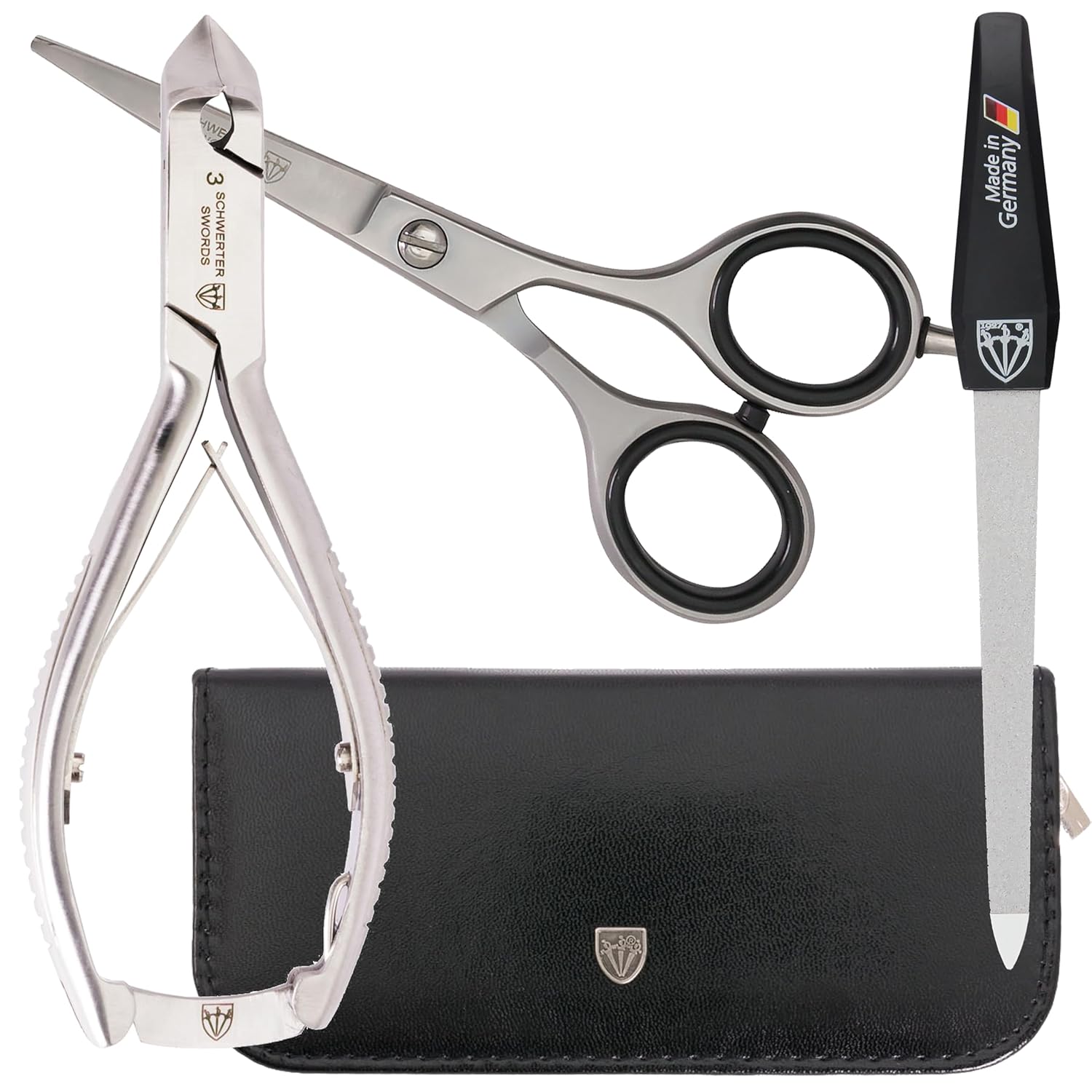 3 Swords Germany - brand quality professional TOE NAIL NIPPER and BEARD SCISSORS set STAINLESS STEEL INOX wave clipper, head cutter with case for ingrown toe nails pedicure by 3 Swords (219)