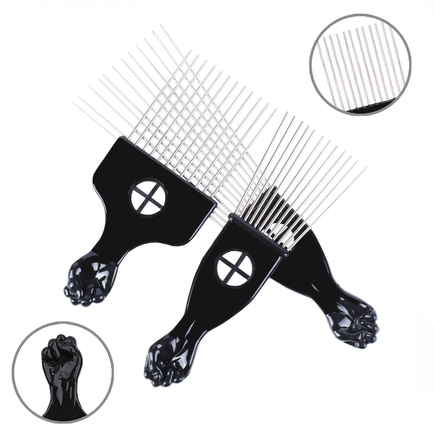 Hair Picks - Black Metal Afro Combs for Hair Styling, Fist Pick for Women and Men