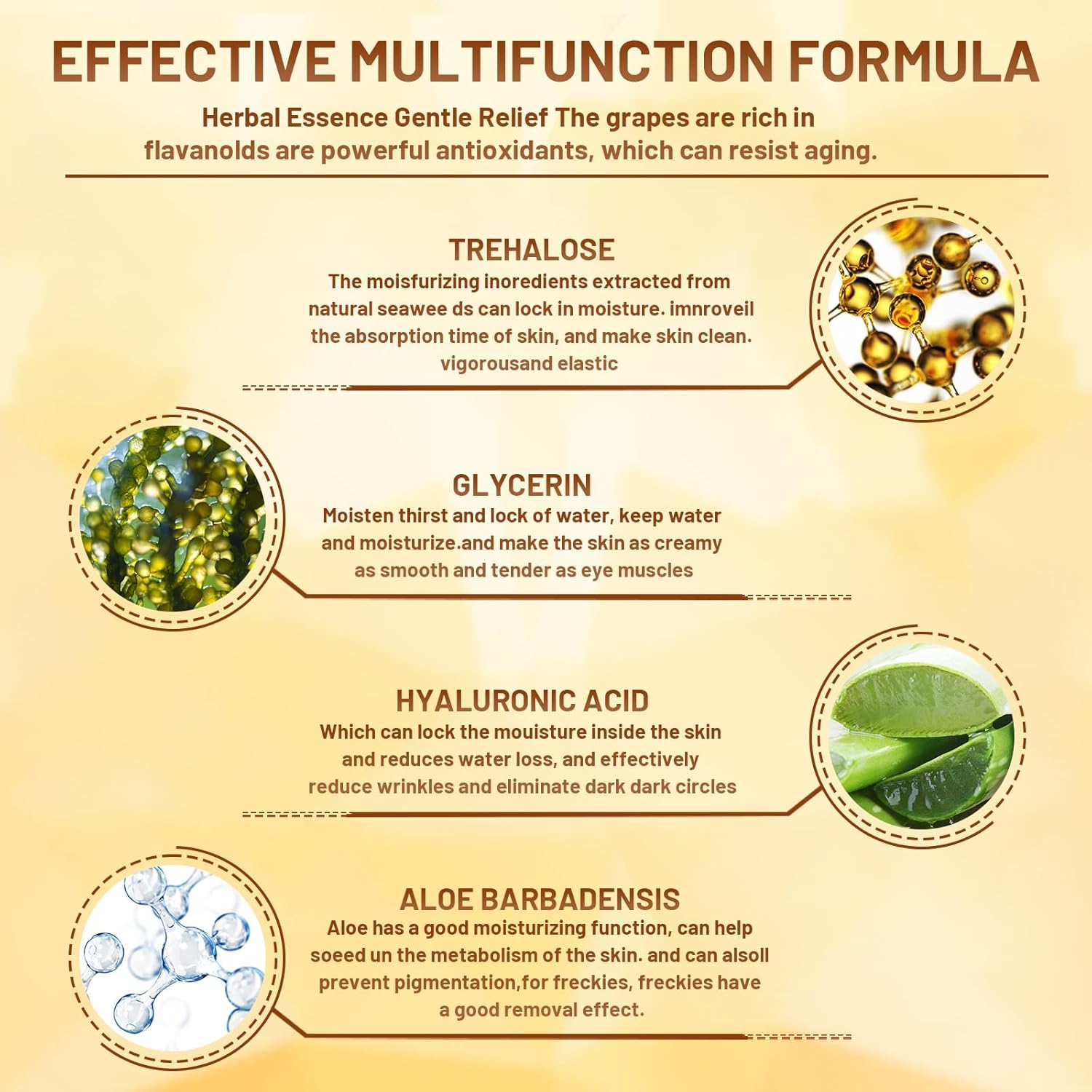 - Obvious Effect: 24k gold, plumping collagen, hydrating hyaluronic acid, moisturising oat peptide and calming rose essential oil