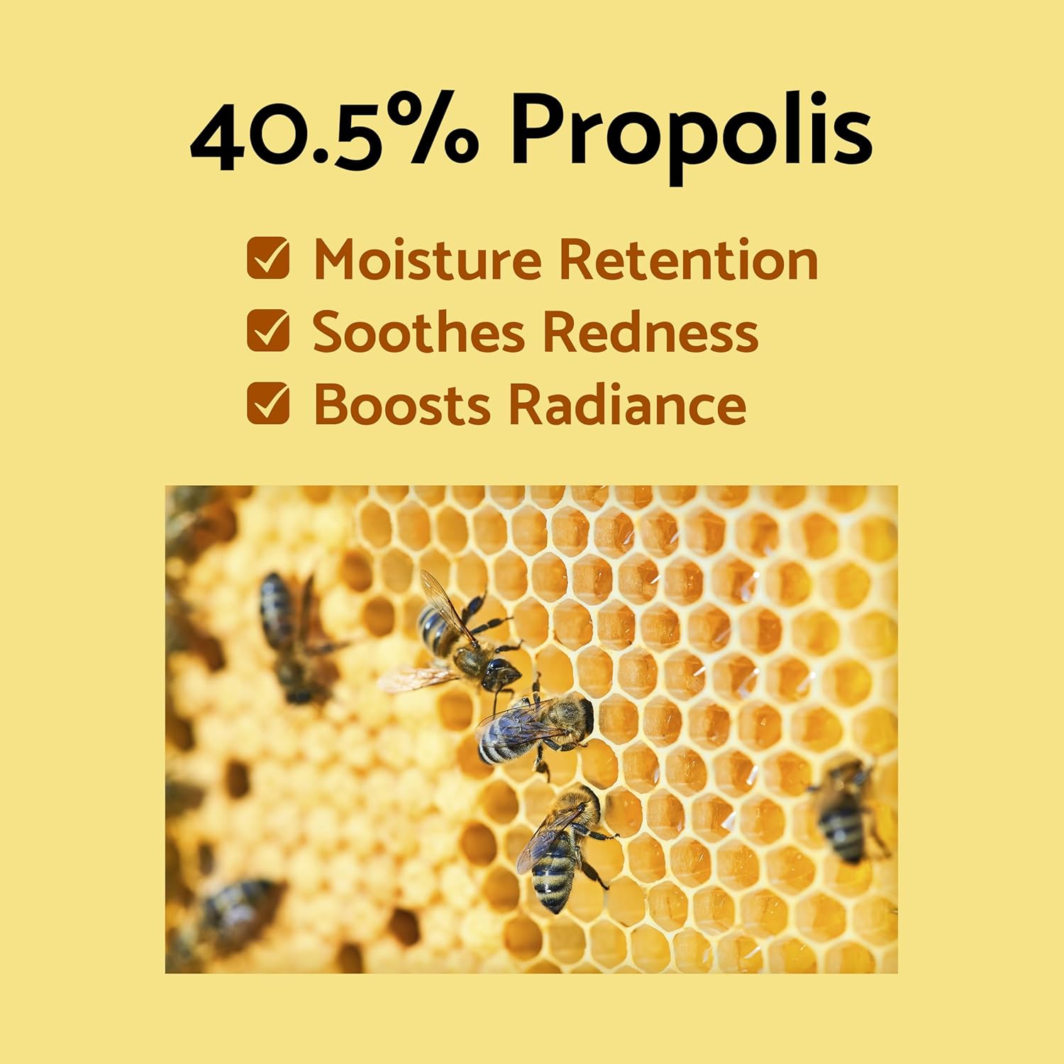 - 🍯 Potent Plant-based Formula: Features a rich blend of 40.5% Propolis Extract and 9.2% Vitamin Fruit Extract, enhanced with 300ppm of Idebenone (Hydroxydecyl Ubiquinone), to deeply nourish, enhance radiance and revitalize the skin. Ideal for sensitive, oily, and acne-prone skin types.