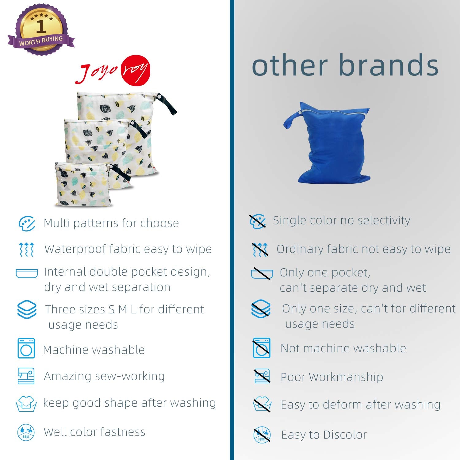 Joyo roy 3Pcs Wet Dry Bag Baby Wet Bags for Pump Parts, Cloth Diapers, Wet Suits, Swimsuits, Travel Dirty Clothes, Waterproof Pouches for Organization with 2 Zippered Pockets 3 Size(S,M,L)