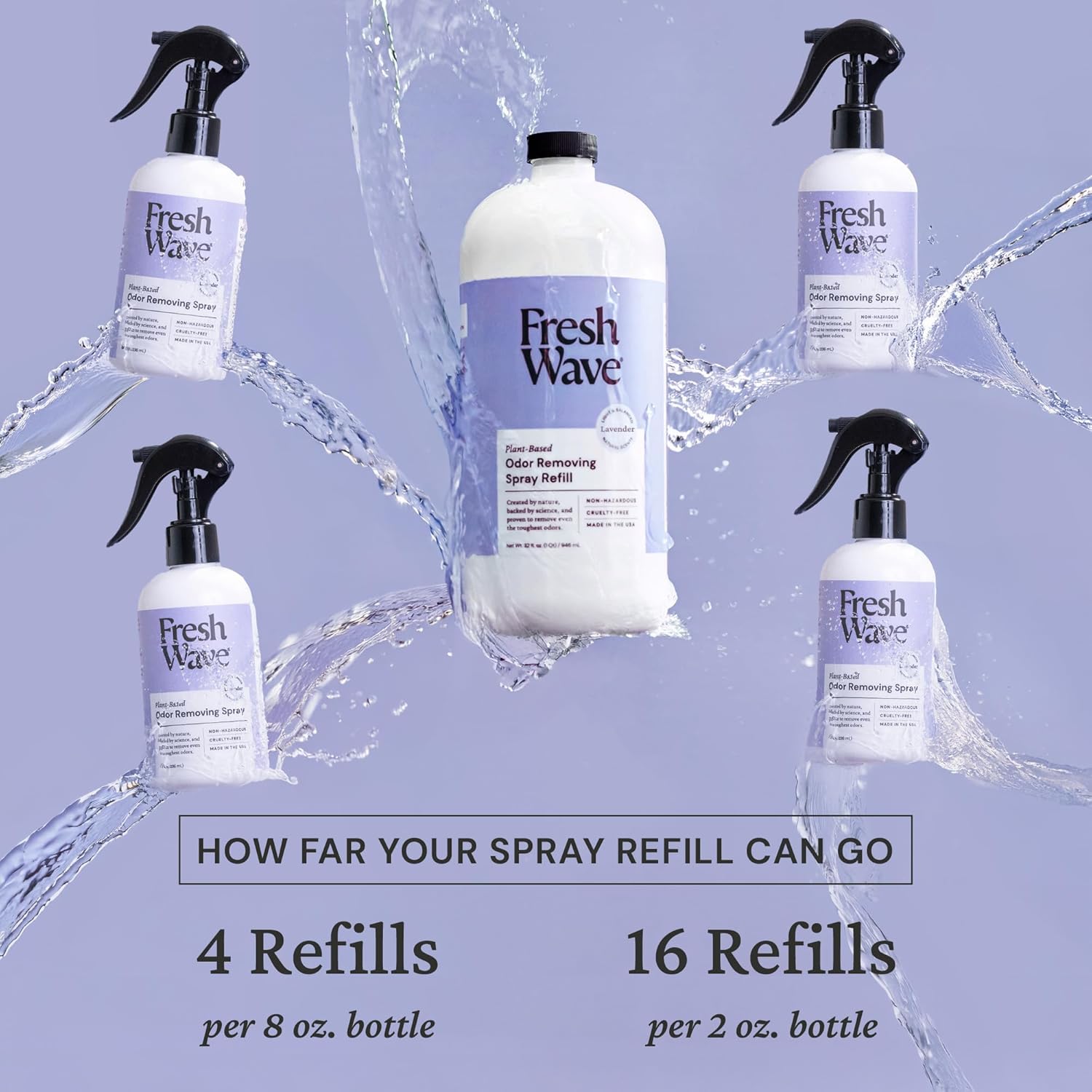 - Refresh and refill. Keep the goodness going with Fresh Wave's Spray Refill. Say goodbye to odors without any harsh chemicals.