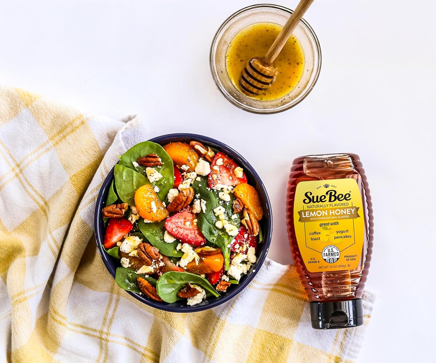 Sue Bee Naturally Flavored Lemon Honey For Tea and Water, Salads, Made in USA, 16 oz