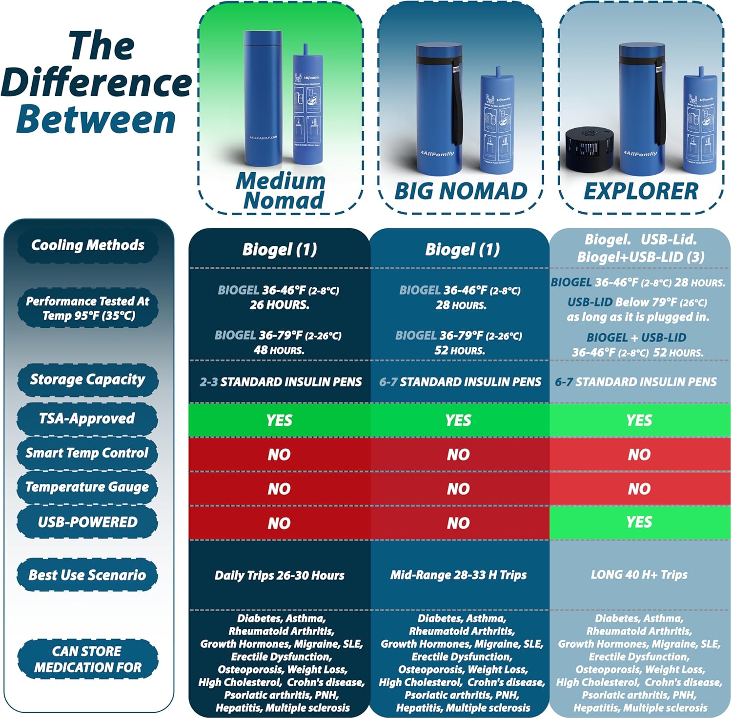 - MAXIMUM STORAGE, MINIMAL BULK: This medium insulin travel cooler holds up to 1–3 pens or injection devices; skip the bulk of a large medical travel cooler as the Medium Nomad fits discreetly in backpacks or carry-ons