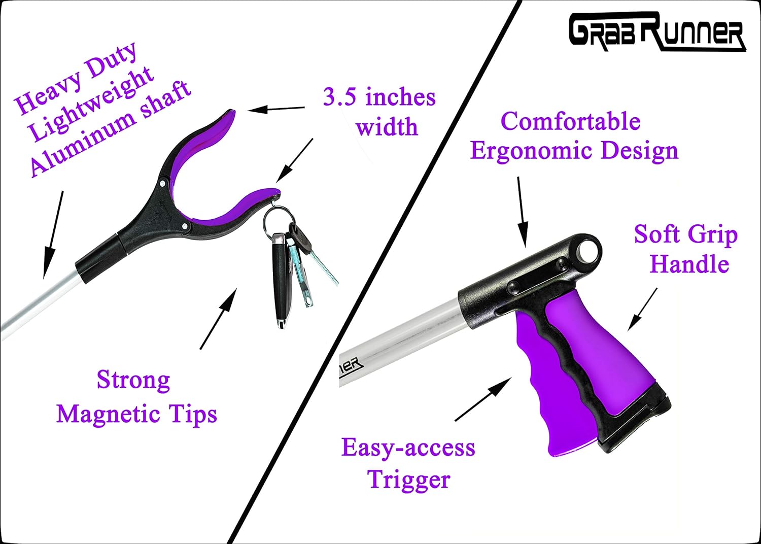 32 inch Foldable GrabRunner Reacher Grabber Tool with Magnetic(Dark Purple)