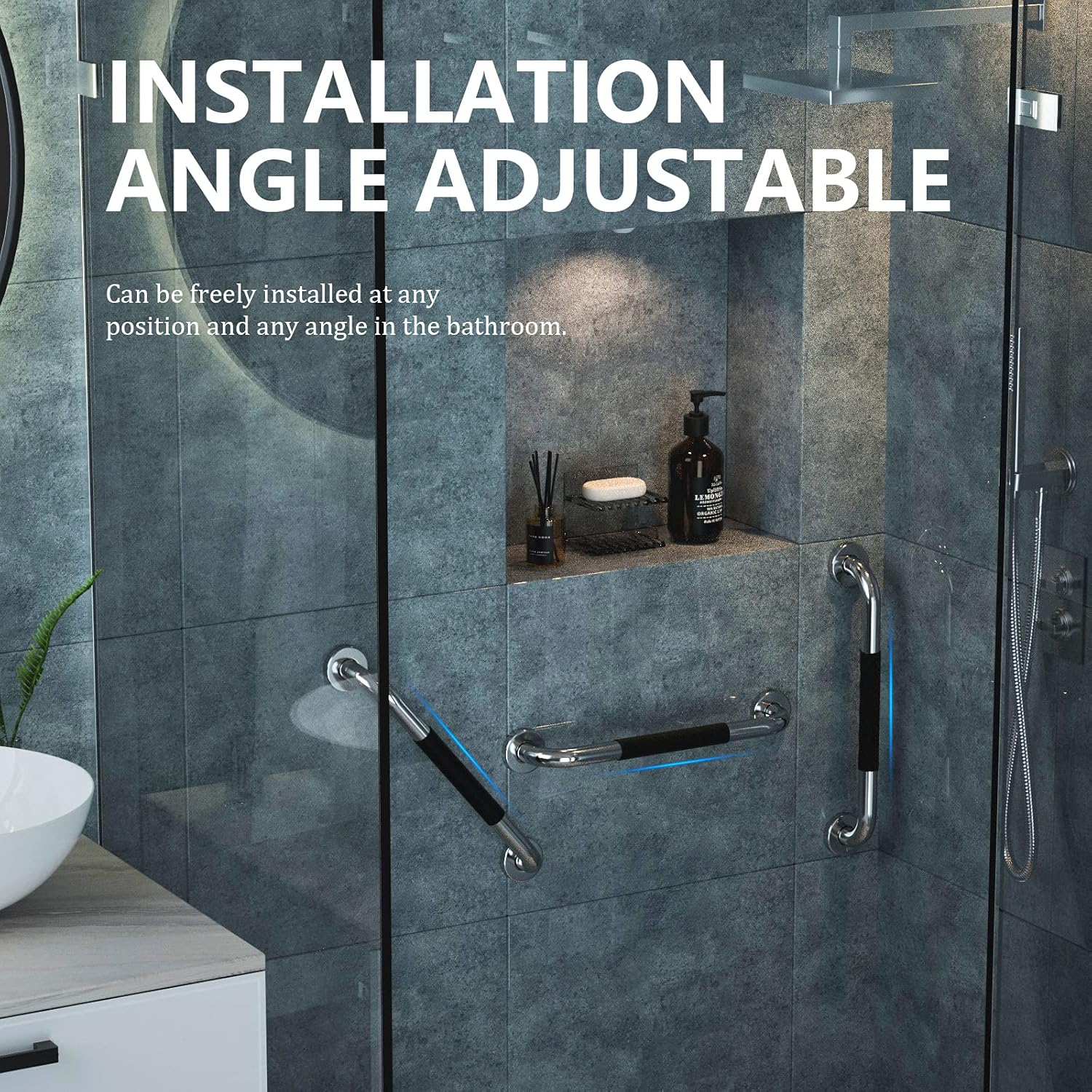 - ZUEXT 2 Pack 12 Inch 1" diameter SUS304 Stainless Steel Chrome Finished Shower Grab Bars with non-slip soft rubber grip; Our anti-slip shower grab handle bar features a convenient design, it come with the mounting screws and anchors for easy installation.