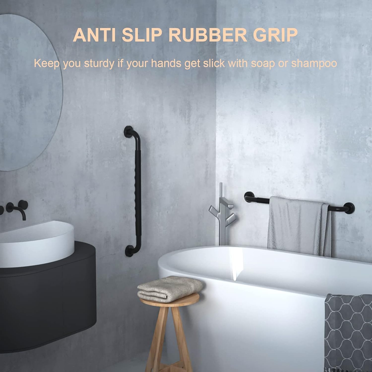 - ZUEXT 2 Pack 24 Inch 1.25" diameter SUS304 Stainless Steel Oil Rubbed Black Shower Grab Bars with non-slip soft rubber grip; Our anti-slip shower grab handle bar features a convenient design, it come with the mounting screws and anchors for easy installation.