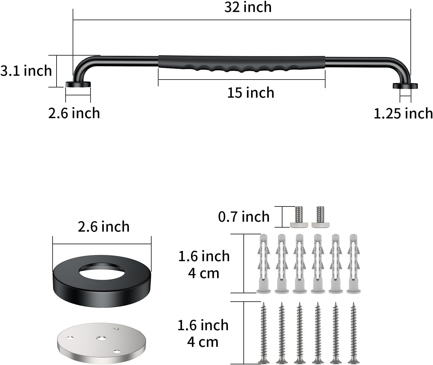- ZUEXT 2 Pack 32 Inch 1.25" diameter SUS304 Stainless Steel Oil Rubbed Black Shower Grab Bars with non-slip soft rubber grip; Our anti-slip shower grab handle bar features a convenient design, it come with the mounting screws and anchors for easy installation.