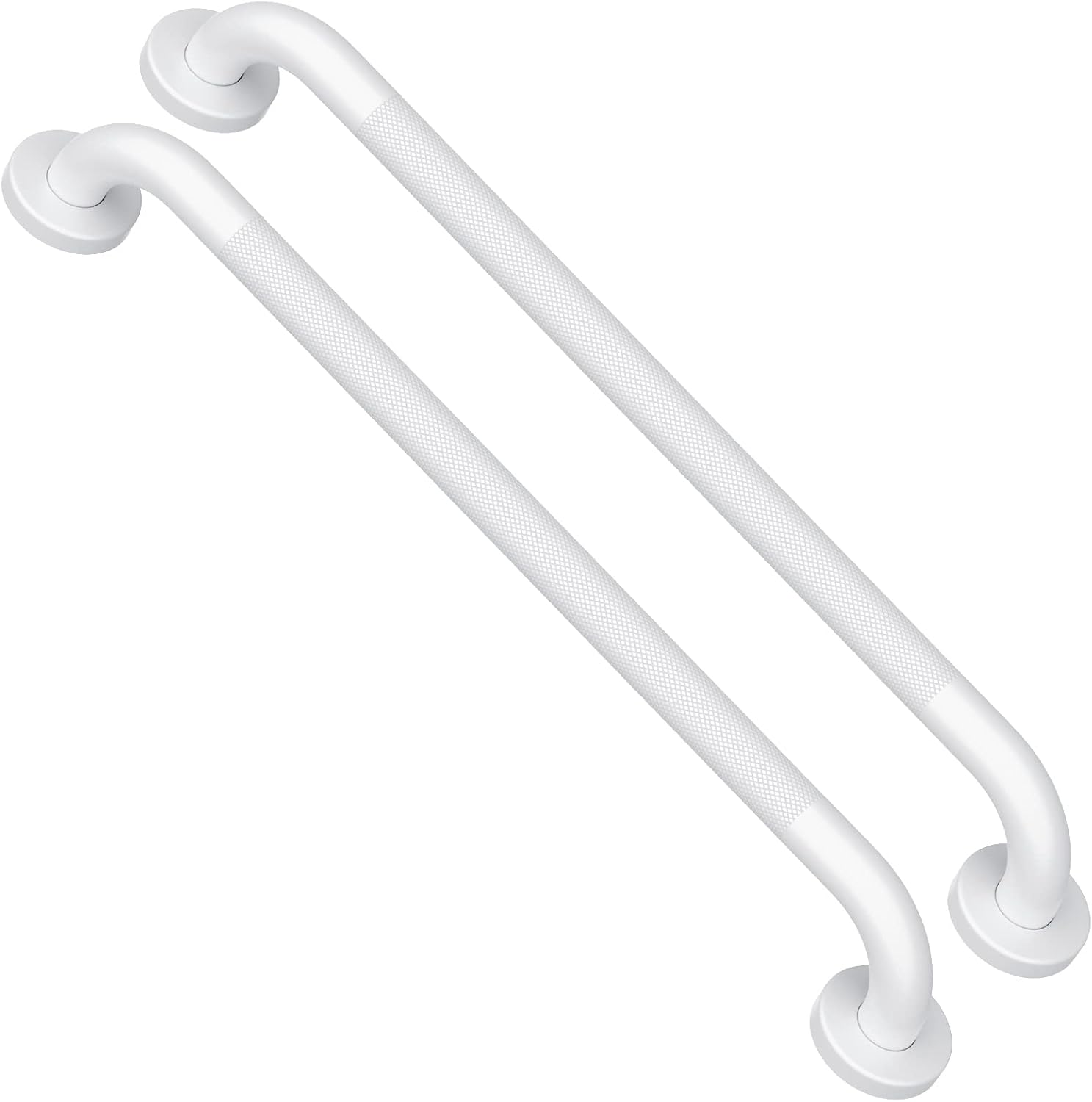 - 2 pack 24 inch white shower grab bar with anti-slip grip