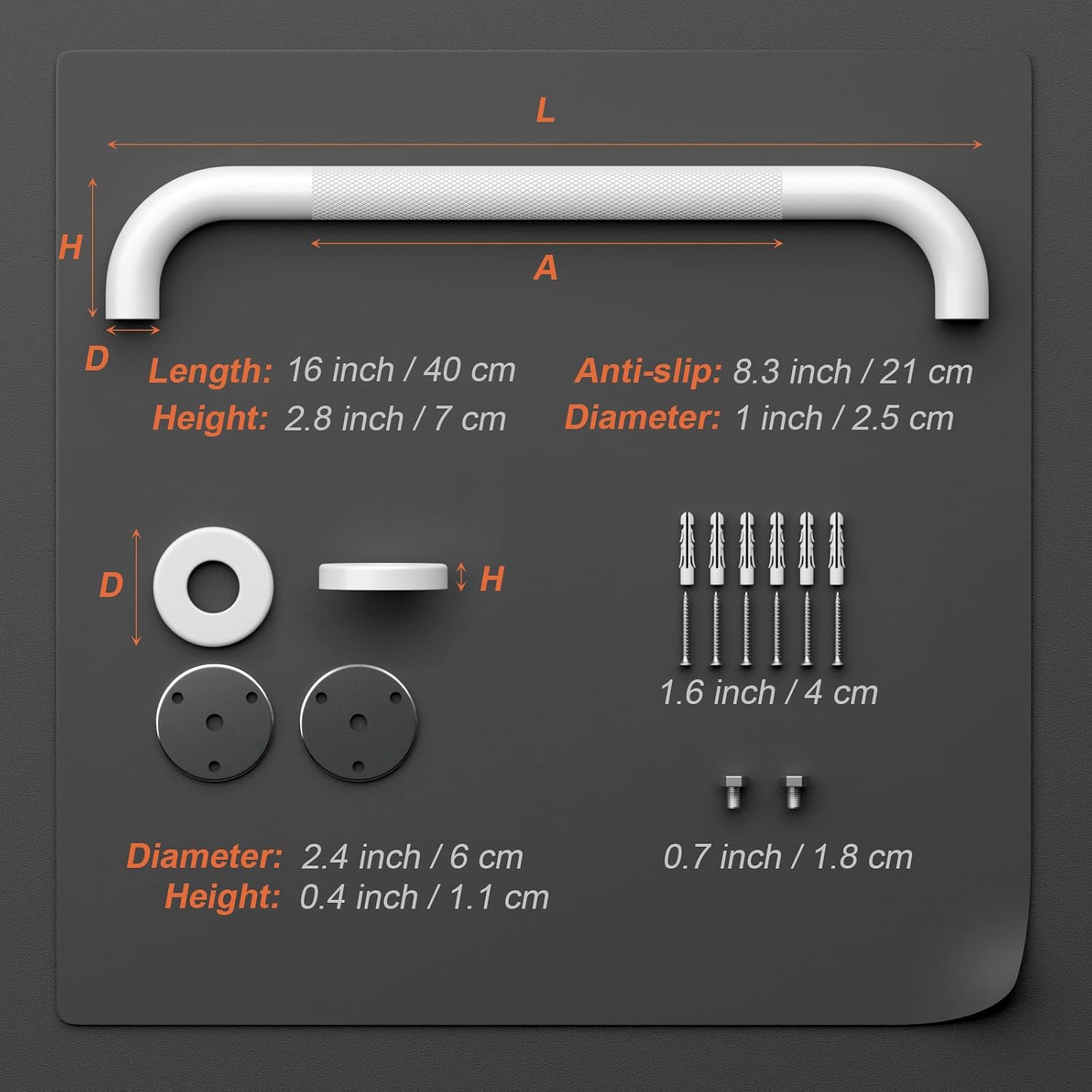 - Use iMomwee white grab bars with anti-slip grip 16 inch in commercial and residential places as in the bathroom, kitchen, along stairways, swimming pool, laundry room, toilet, bathtub and shower safety grab handrails for additional fall prevention, especially for the handicap, elderly, pregnant women and children. Not only apply to use as bath shower grab bar, but also can hold clothing, towel, etc.