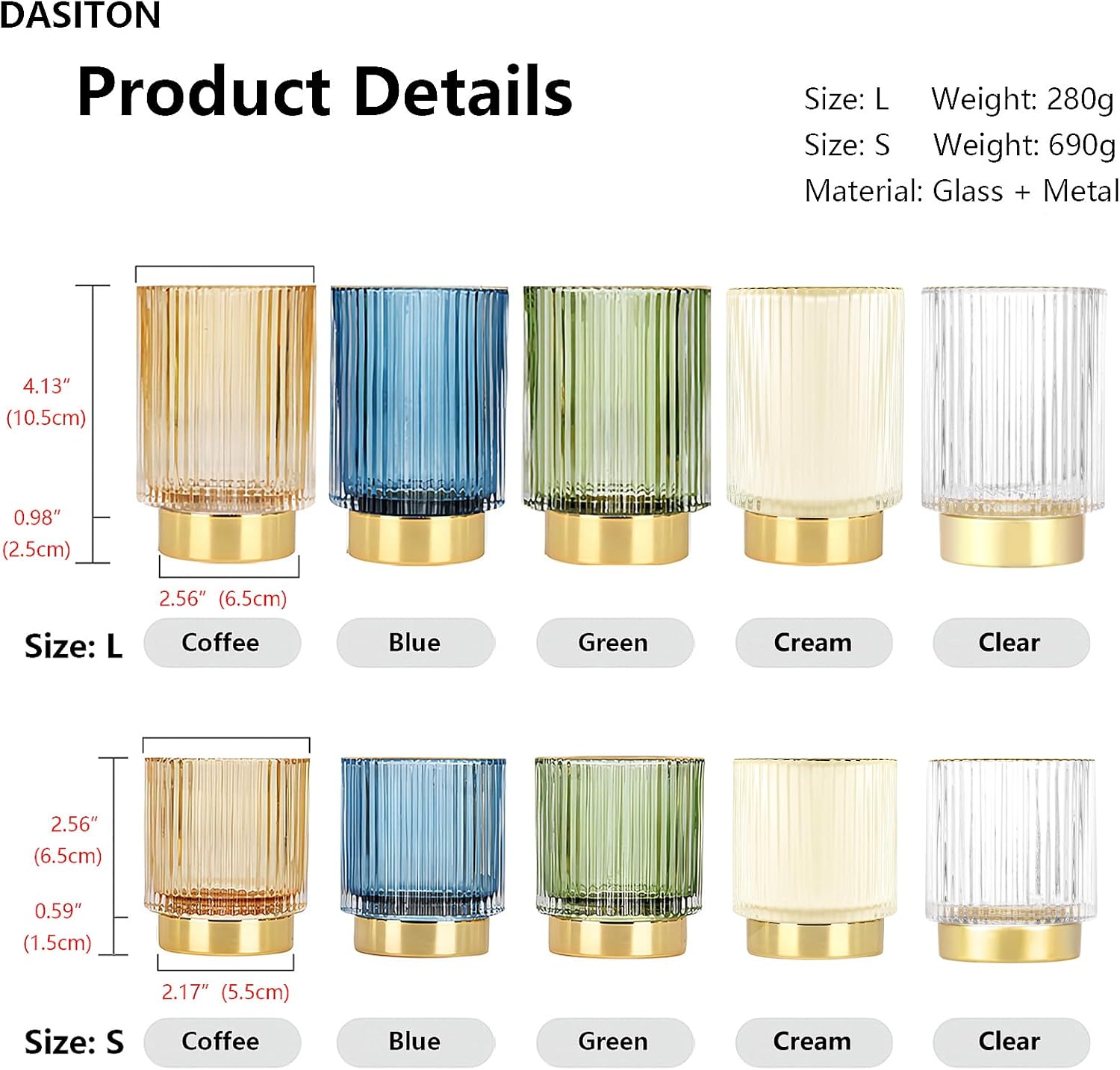 DASITON Makeup Brush holder Organizer,Crystal Cosmetic Makeup Brush Glass Brushes Storage Holder, Vintage Make Up Brush Cup Pen Pencil Holder striped vase(Blue L)