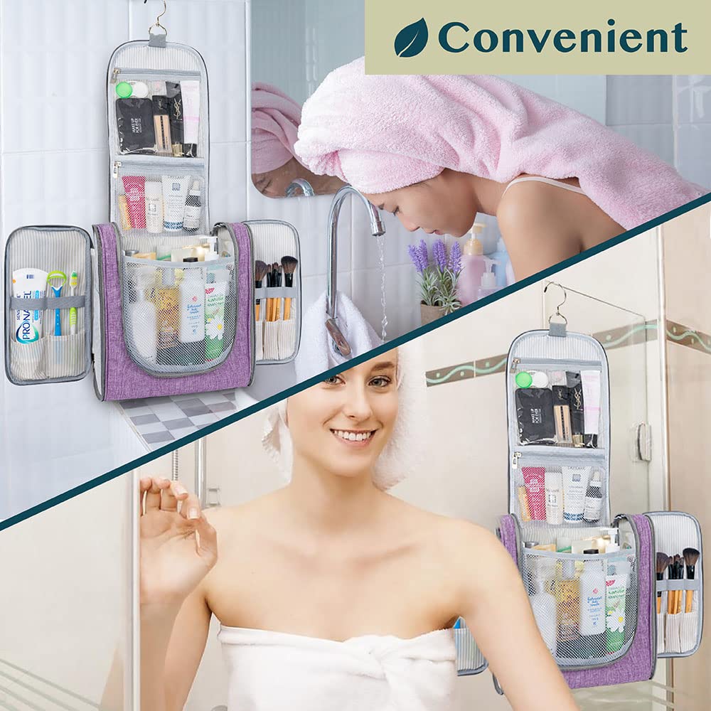 PAVILIA Extra Large Toiletry Bag Travel Bag for Women Men, Hanging Cosmetic Organizer, Water Resistant Makeup Bag for Accessories Toiletries, Travel Essentials Kit (Purple)