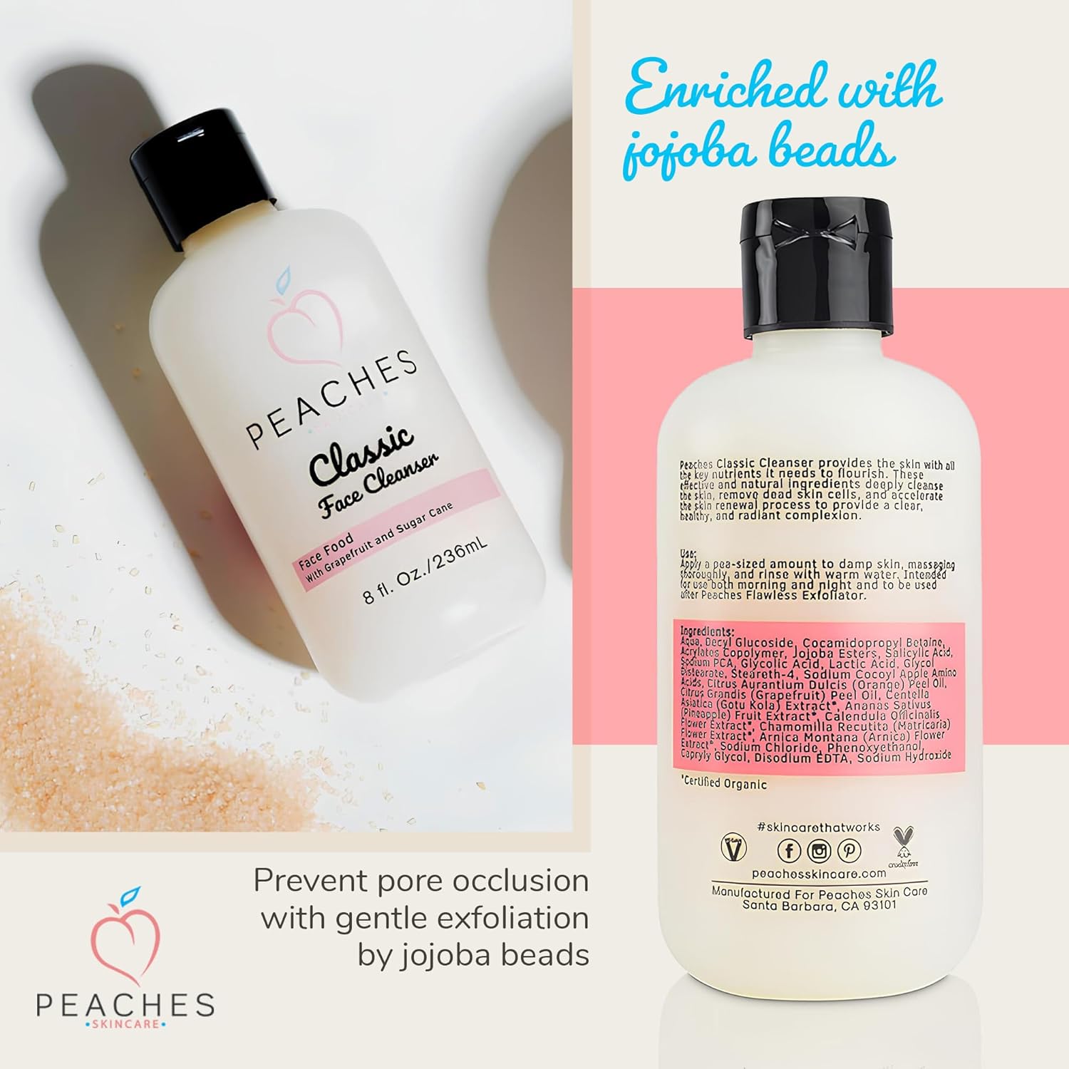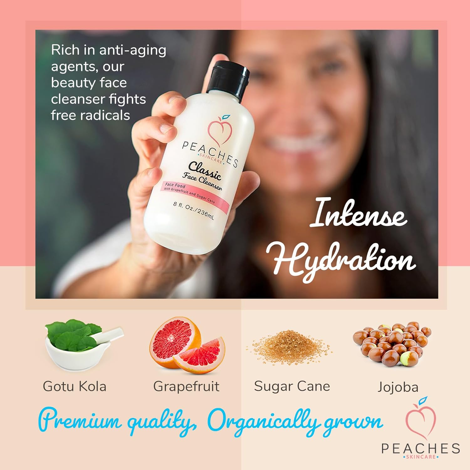 - Classic Face Cleanser - Deeply cleanse and rejuvenate your skin by using the Peaches’ Classic hydrating cleanser. This women and men's face wash provides your skin with all the essential potent nutrients it needs.