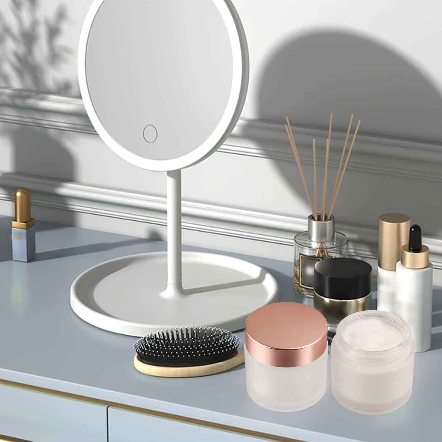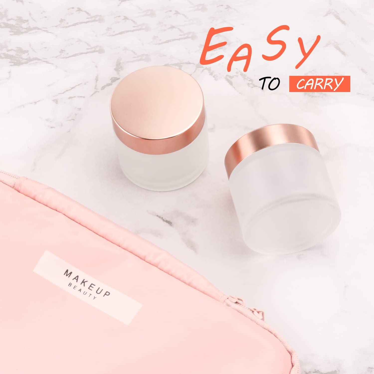 - 【Package Included】4 Pcs 60ml/ 2 oz glass cosmetic jars, each come with inner liners and rose gold aluminum lids,with 4 pcs plastic scraper.