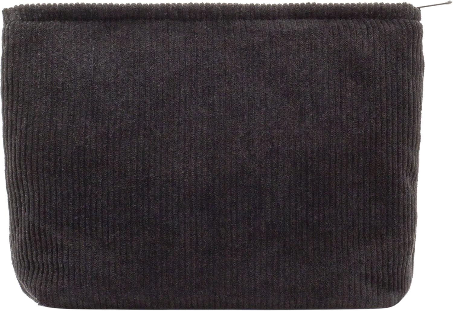 PAZIMIIK Makeup Bag Large Zipper Corduroy Make Up Pouch for Purse Travel Canvas Cosmetic Organizer for Women Brush Storage,Black