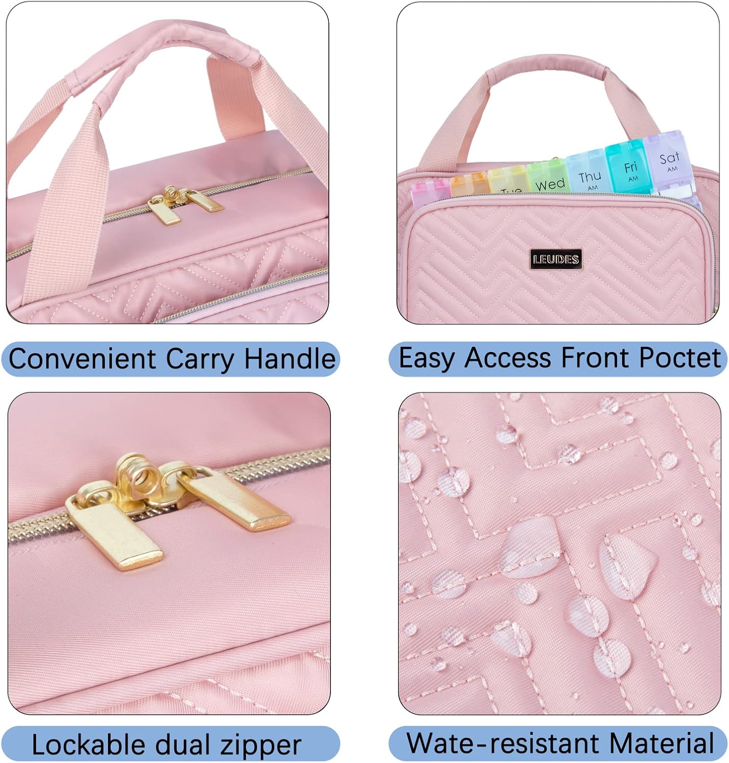 Leudes Travel Pill Bottle Organizer,Medicine Organizer and Storage,Home Medication Bag, Cases,Carrier for Pills,Vitamin,Fish Oil,Supplements for Women and Men (Medium, Pink)