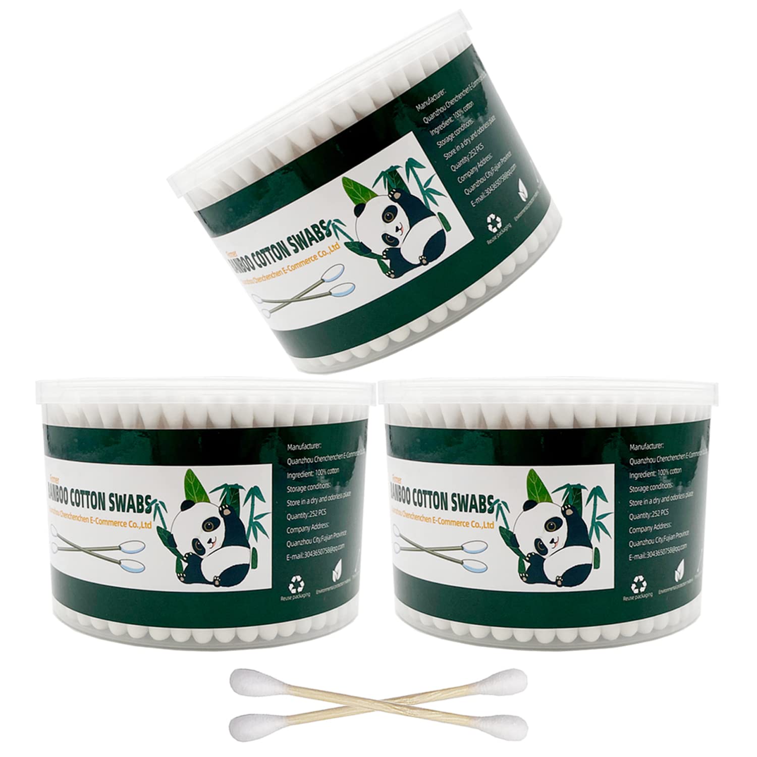 - Three boxes in total, 252 xl double-tip round bamboo swabs per box,100% biodegradable and organic.