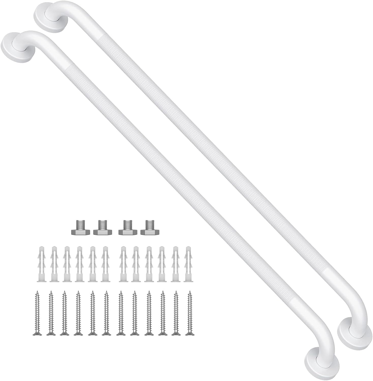 - iMomwee concealed mount safety bath and shower oil rubbed white grab bars backed with 3 Years of Free Replacement Warranty. These knurled grip white grab bar 36 inch can be permanently used once it's properly installed.