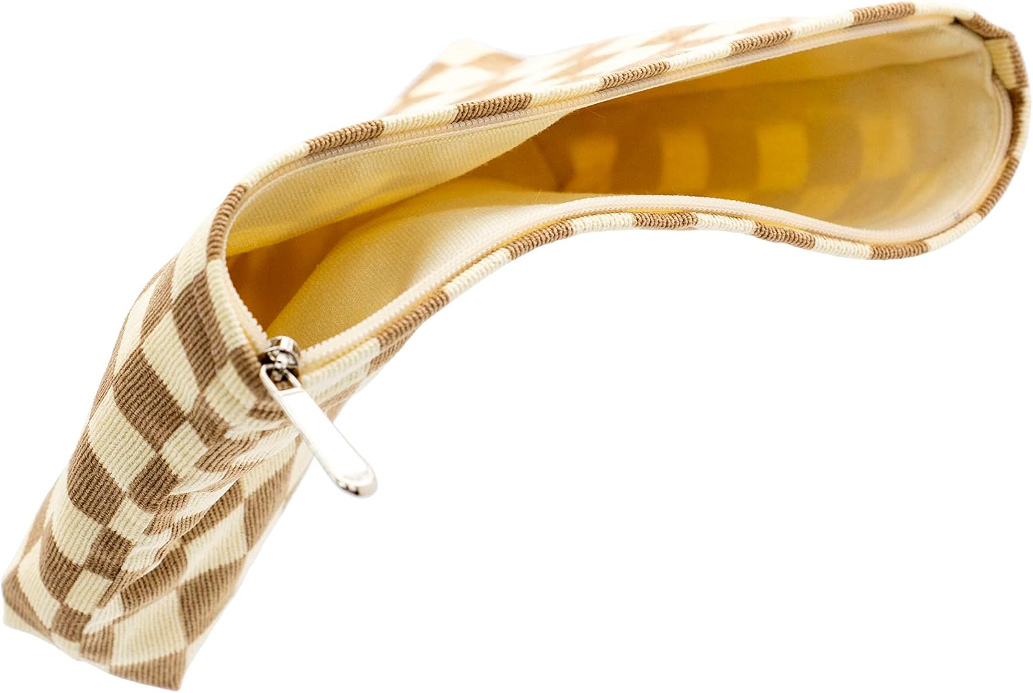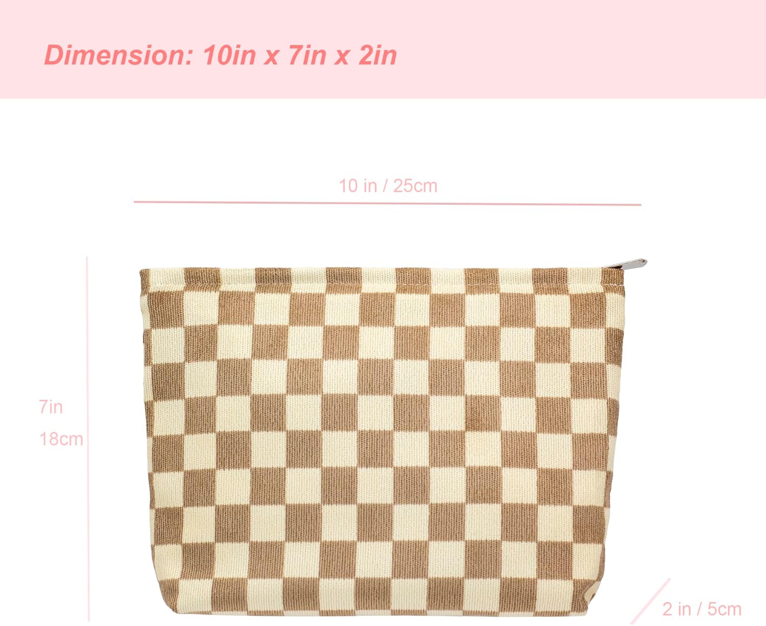 PAZIMIIK Makeup Bag Large Zipper Corduroy Make Up Pouch for Purse Travel Canvas Cosmetic Organizer for Women Brush Storage,Checkered Light Brown