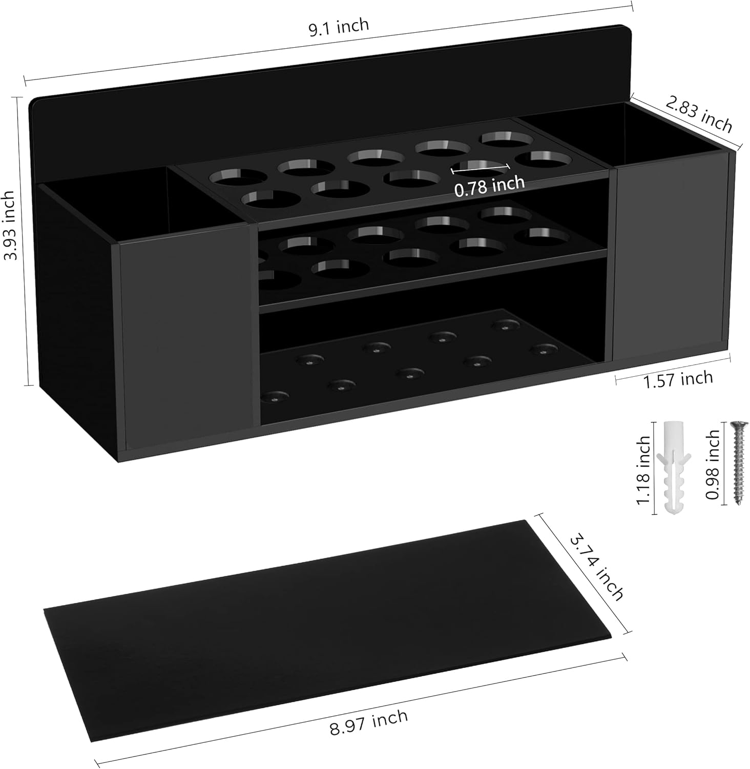 - PATENT PENDING: 𝗣𝗔𝗧𝗘𝗡𝗧 𝗣𝗘𝗡𝗗𝗜𝗡𝗚. This 2-tier design ( Patent Pending ) can ensure that the holes in the bottom tray are just right for holding the tips of standard dry erase markers in place. If you don't want to install it on the wall, it can also be placed on the table top.