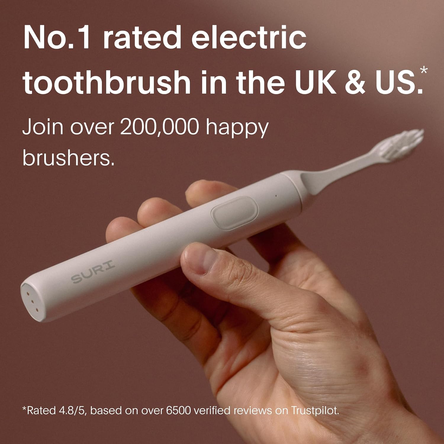 - DESIGNED IN CALIFORNIA - Slim yet powerful. SURI's award-winning sonic toothbrush is 1/2 the size of a standard electric tooth brush and delivers a professional sonic clean by vibrating over 33,000 times per minute