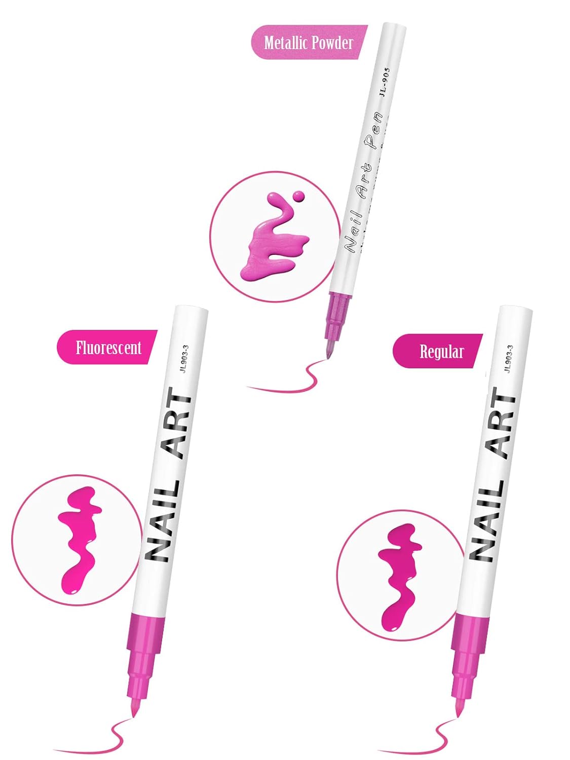 - 【NOTE】 - The nail art pens to be used with nail polish top coat, even if the drawing is wrong, just wipe it with alcohol. Until the drawing is completed, the nail polish top coat can be applied to the picture after air-drying. Need to cover the cap after use to prevent the pen from drying out.