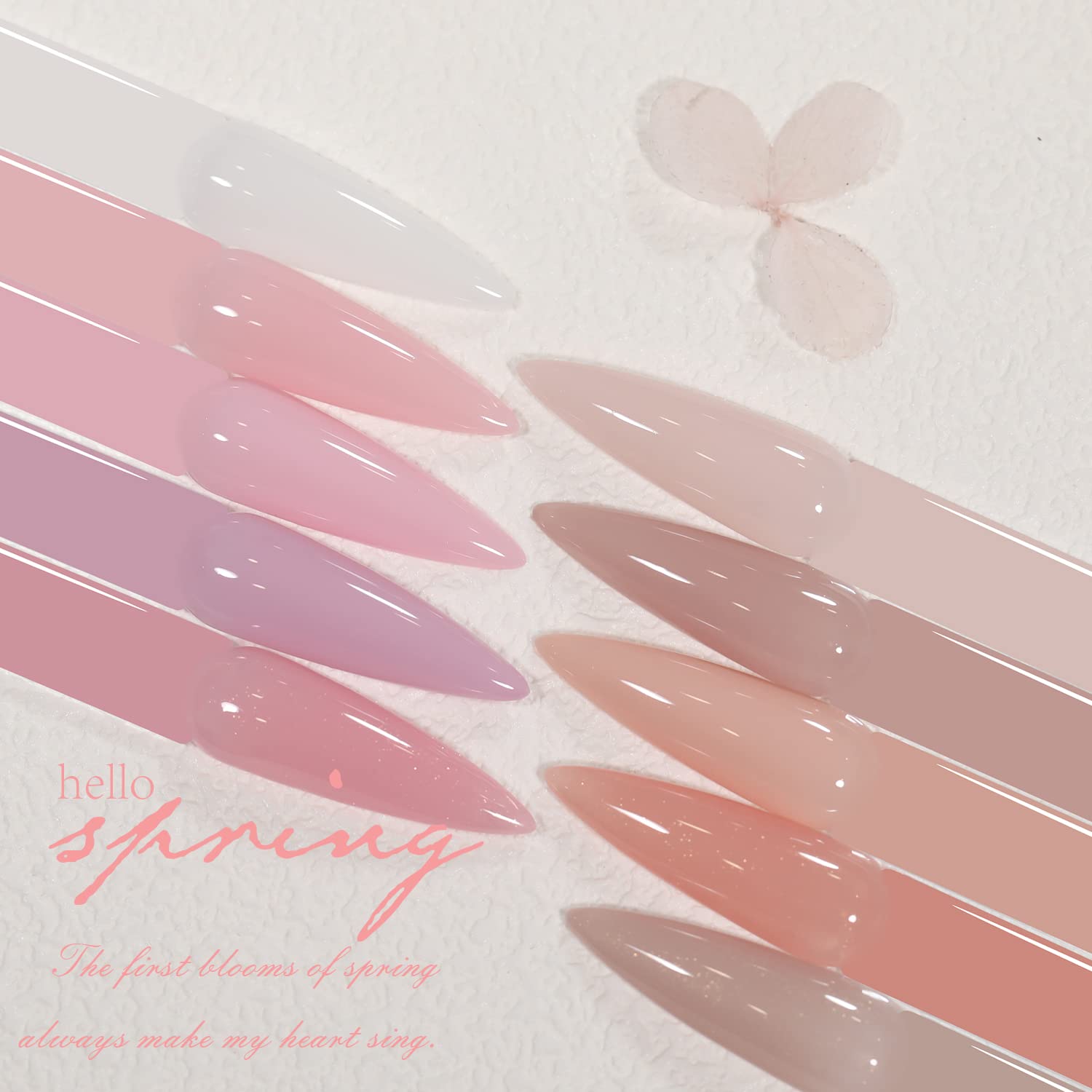 Jelly Pink Gel Nail Polish Set of 10 Colors Including Pink Purple Milky White Nude Gel Polish Kit UV LED Soak Off Nail Polish Home DIY Manicure Nail Salon Varnish