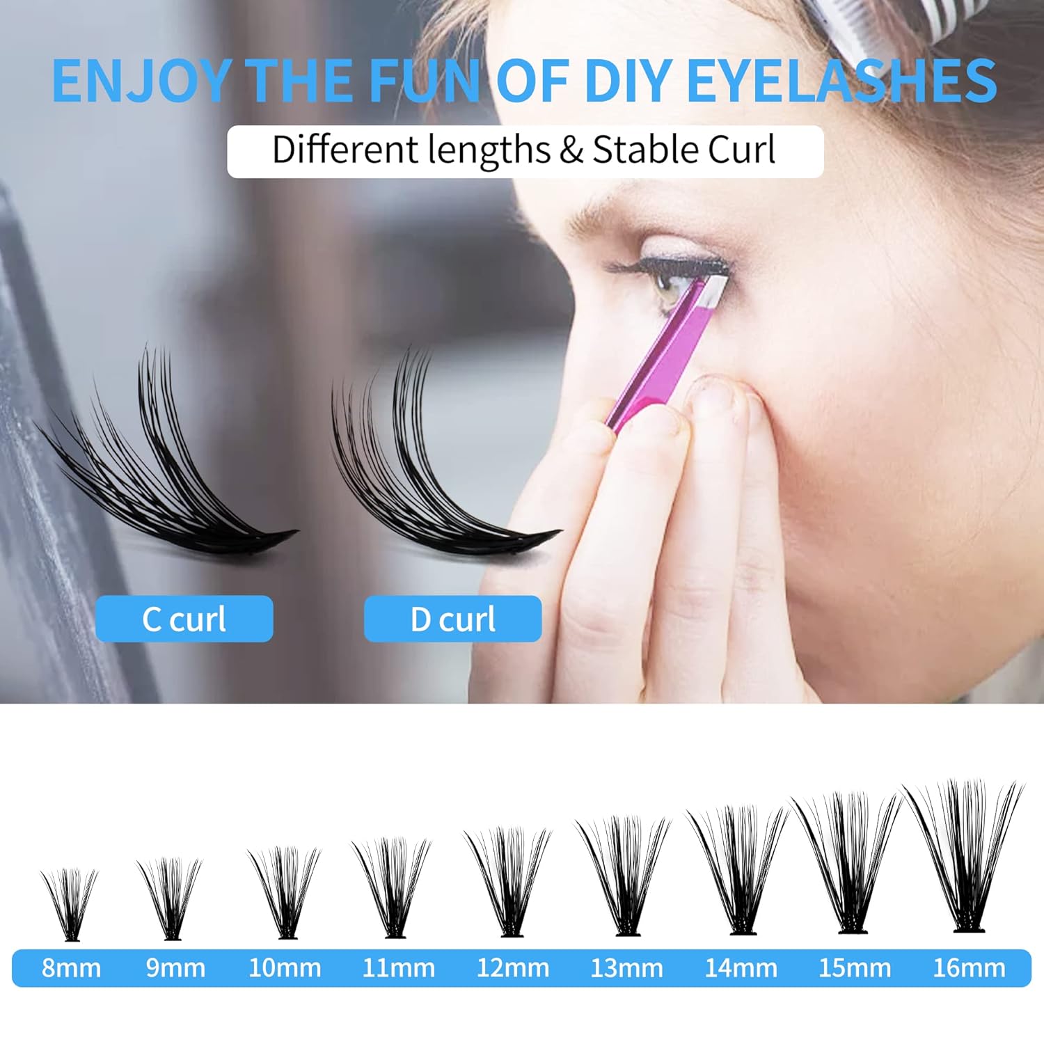 - ❤Create Different Styles: The individual lashes cluster can create eyelashes of different styles, a variety of lash lengths can help you easily achieve a natural or dramatic look. You can apply individual lashes cluster in ascending order which gives a nice cat-eye effect—different sizes for different sections to choose from. And you can combine eyelashes of different lengths to create different styles according to your needs and match more possibilities.