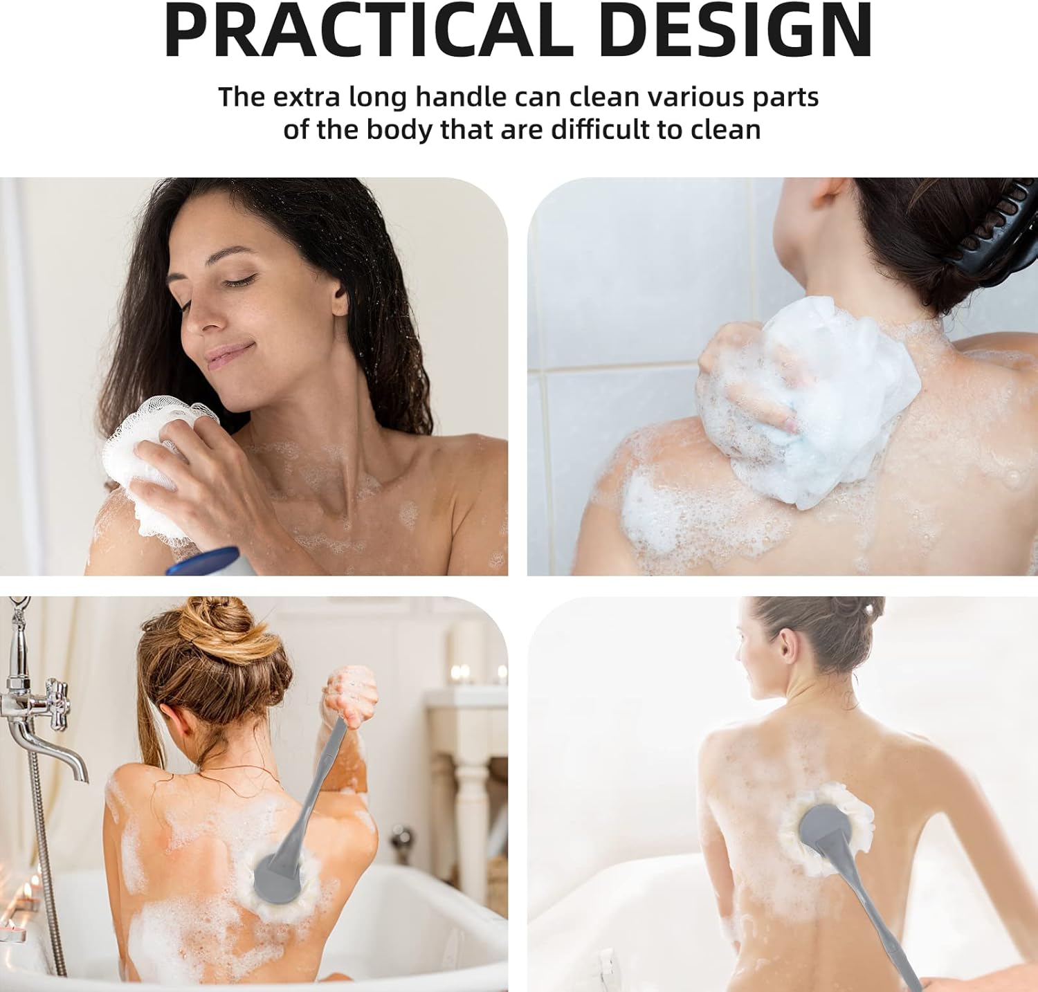 - 【Detachable Non-Slip Handle】- Unlike traditional straight-handled long-handled brushes, this 20.5-inch back loofah can be disassembled into two parts and can be carried anywhere. The non-slip padded handle provides a comfortable and secure grip that conforms to the curves of the body, allowing you to thoroughly clean your body without painful bending or twisting. Especially in hard-to-reach corners such as the back, feet, and elbows