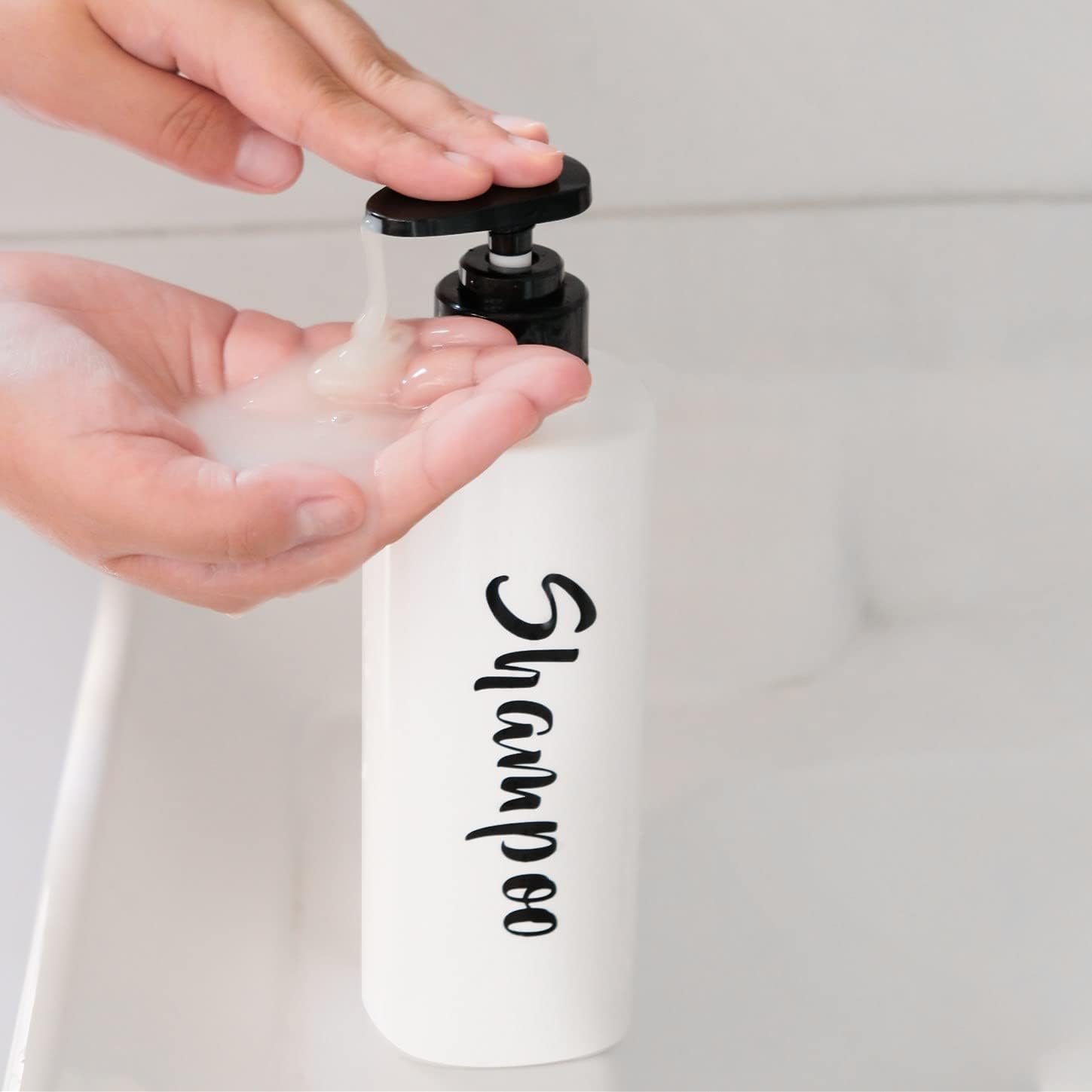- ✅【Modern Style Design】: A stylish & luxurious way to organize your bathroom! Our set of Three shampoo dispenser comes in an elegant square design with sleek edges and exquisite elegant silkscreened script permanent that will make your bathroom feel like a high-end spa salon. Upgraded with a refreshed aesthetic, this design blends seamlessly into any modern bathroom décor.