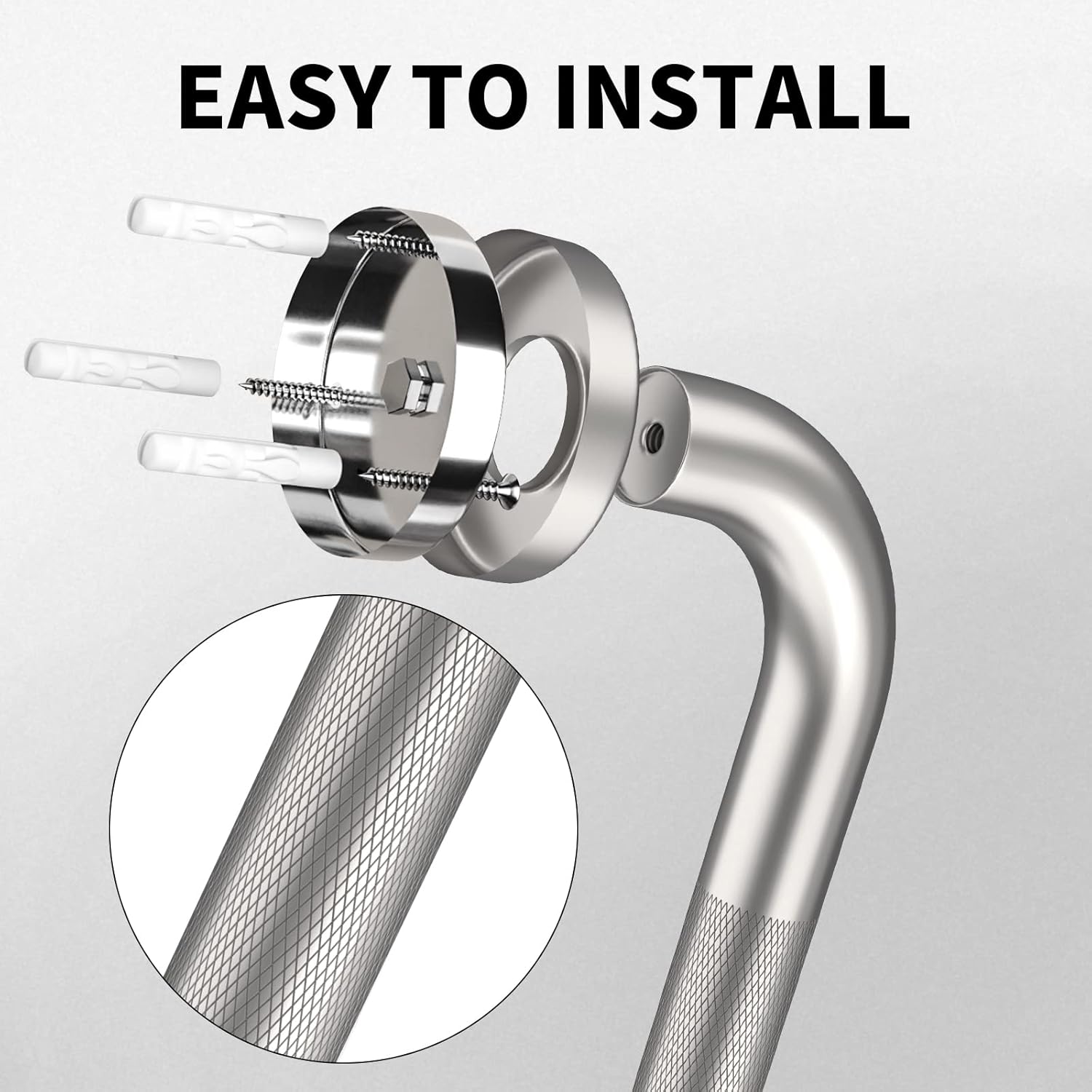 - Munzong 36 inch knurled surface bathroom shower grab bars 1.25 inch diameter are able to support up to 500 lbs of pull force to provide a stable, reliable handhold; Made of anti-rust stainless steel for a lasting strength and quality.