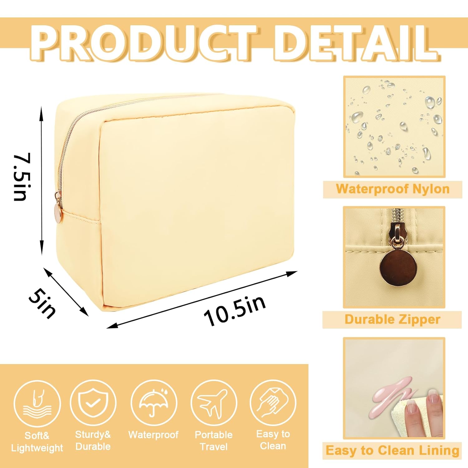 - 【High Quality Material】The cosmetic bag is constructed of lightweight and durable nylon fabric. It is waterproof and easy to clean, helping to protect your beauty, cosmetics and toiletries from water spillage accidents.It will not lose color after the wash.