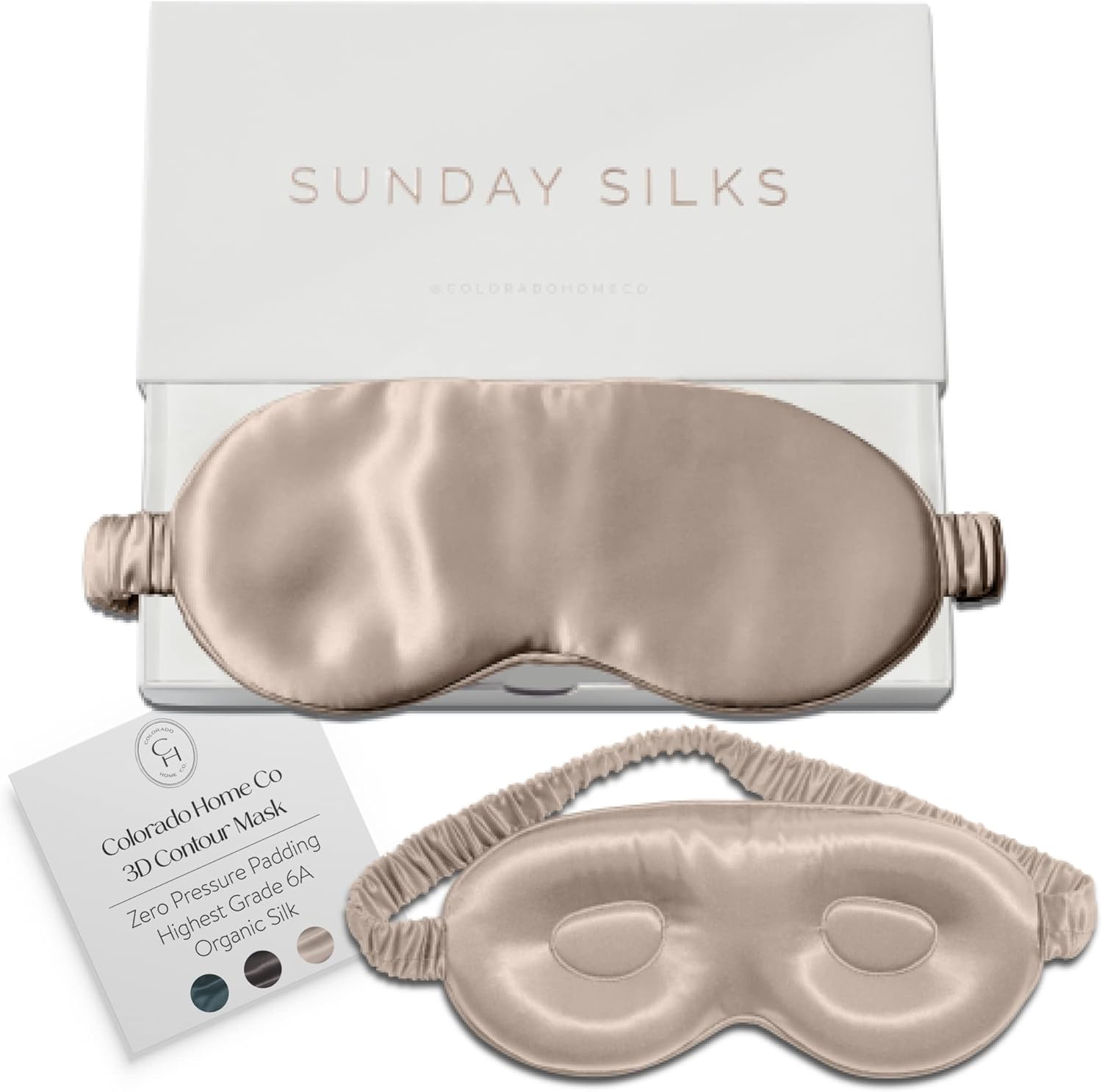 SUNDAYSILKS™ 3D Contoured Silk Sleep Mask | Padded Silk Eye Mask with Eye Cups for Lash Extensions | Blackout, Organic for Women & Men, Perfect for Travel, Slip-Free Deep Sleeping, Antifaz para Dormir