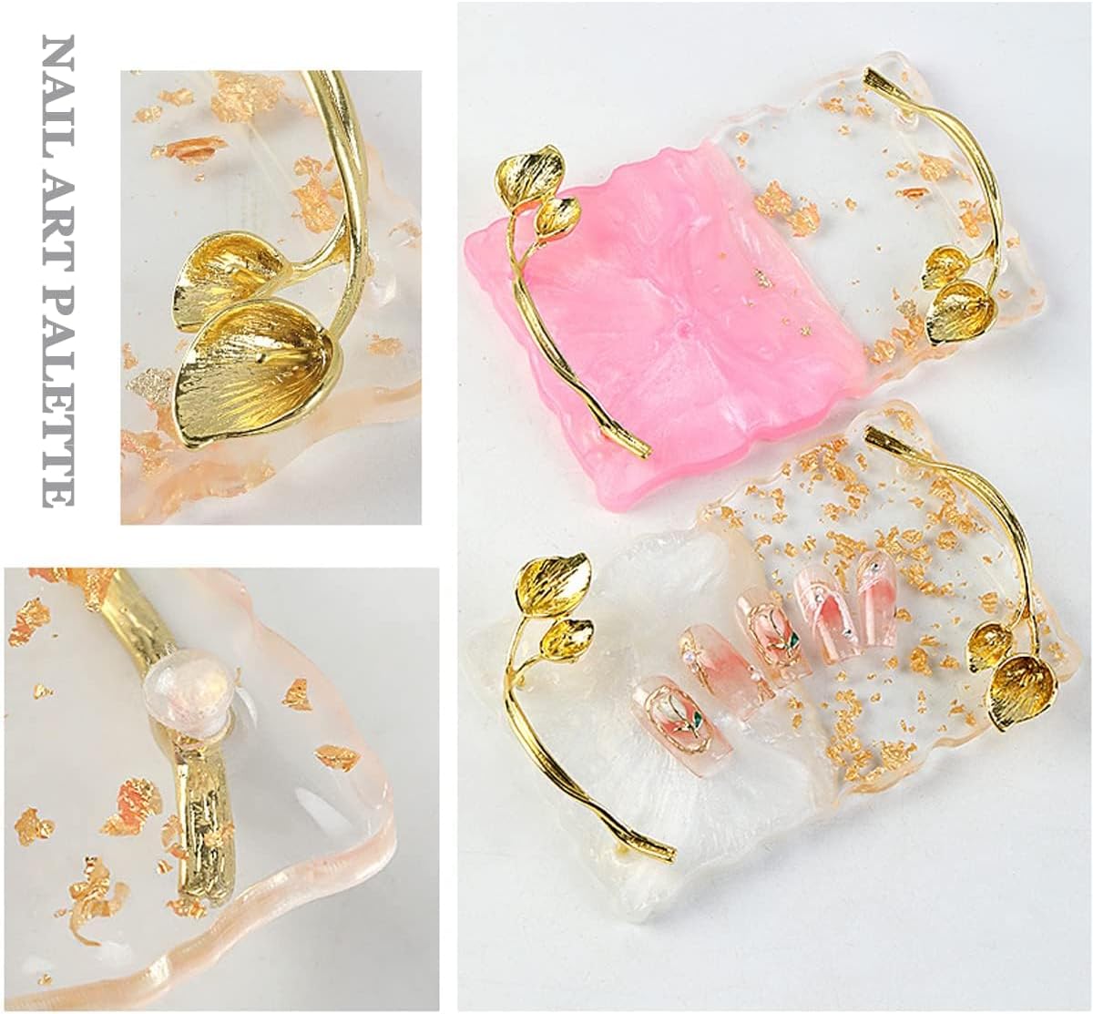 - Exquisite Design: Perfect resin manicure palette that mixes nail color, which helps maintain pigment. Rectangle shape, translucent and half-color, gold leaves handle design, beautiful color and comfortable texture, superior and exquisite.