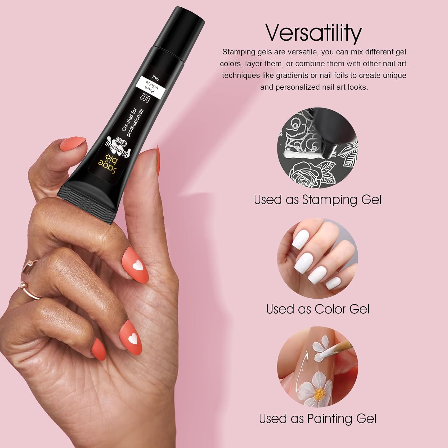- 【You Will Get】8 Colors of stamping polish gels. Capacity of stamp gels- 8ml/0.27fl.oz. This stamping gel polish will enhance the performance of our stamping kit and allow you to fully enjoy the beautiful designs on the template plates.