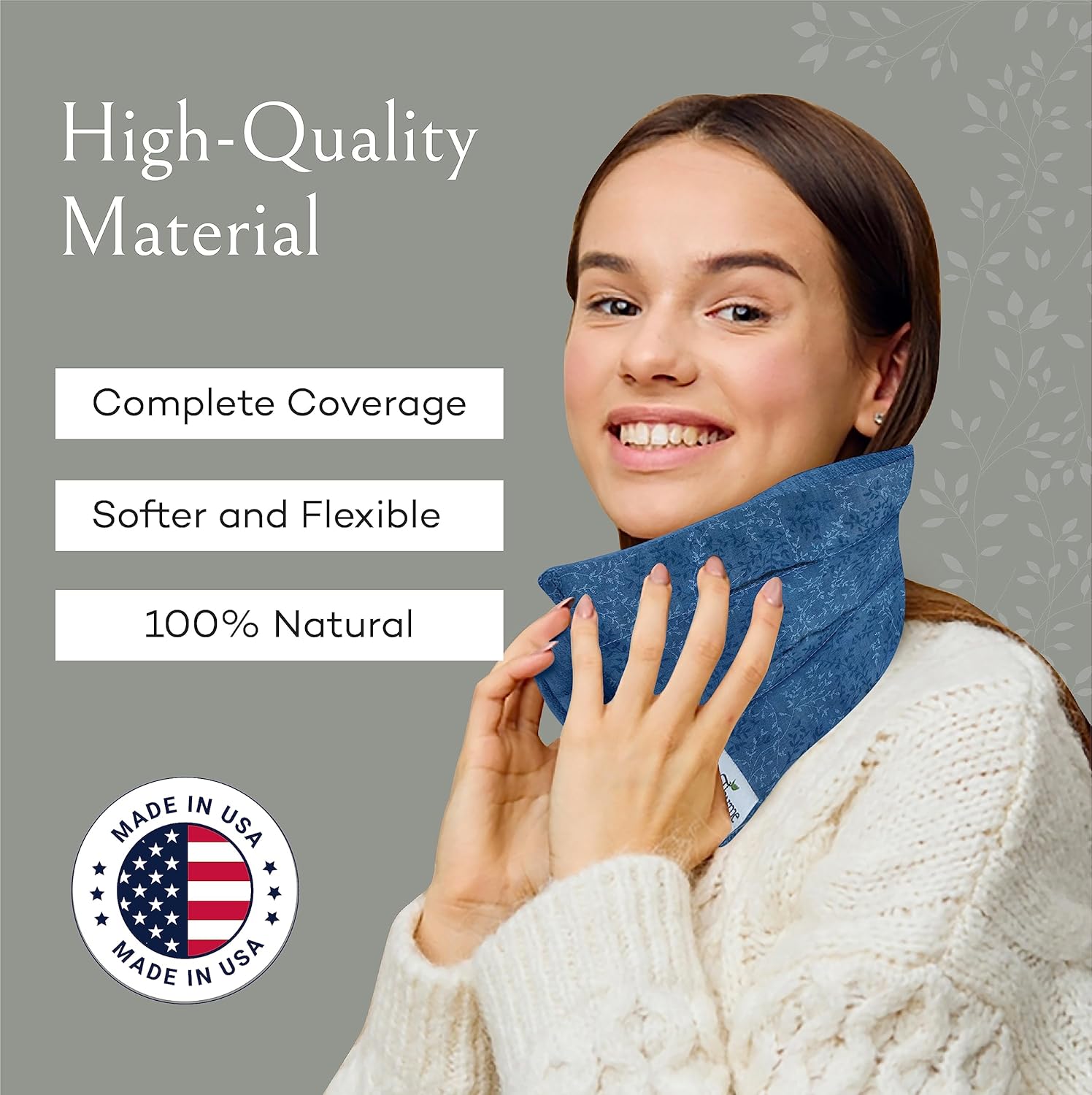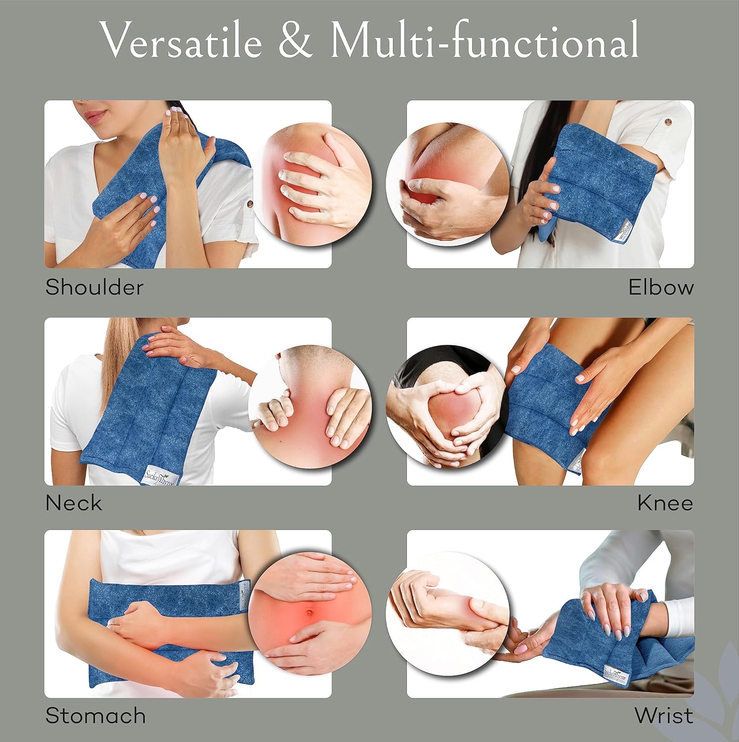 SacksyThyme Microwave Heating Pad for Back, Neck, Menstrual Cramps, Shoulders, Leg Pain Relief - Hot Moist Microwavable Therapy Pack - Blue Unscented Flaxseed Heat Pad Made in USA (Size: 18” x 7”)