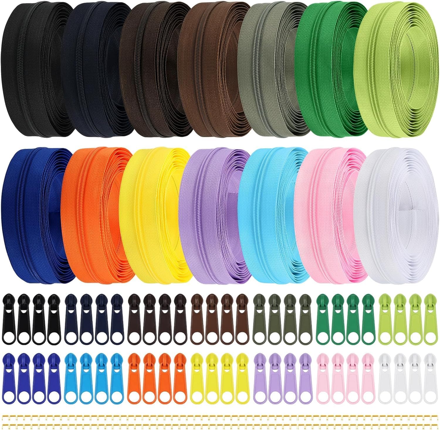 - Adequate to Meet Your Needs: you will receive about 42 yards of nylon coil zipper rolls in 14 different colors, per color a roll and 3 yards per roll, come with 56 zipper sliders and 4 per color, enough amount and colors can meet your need and replacements