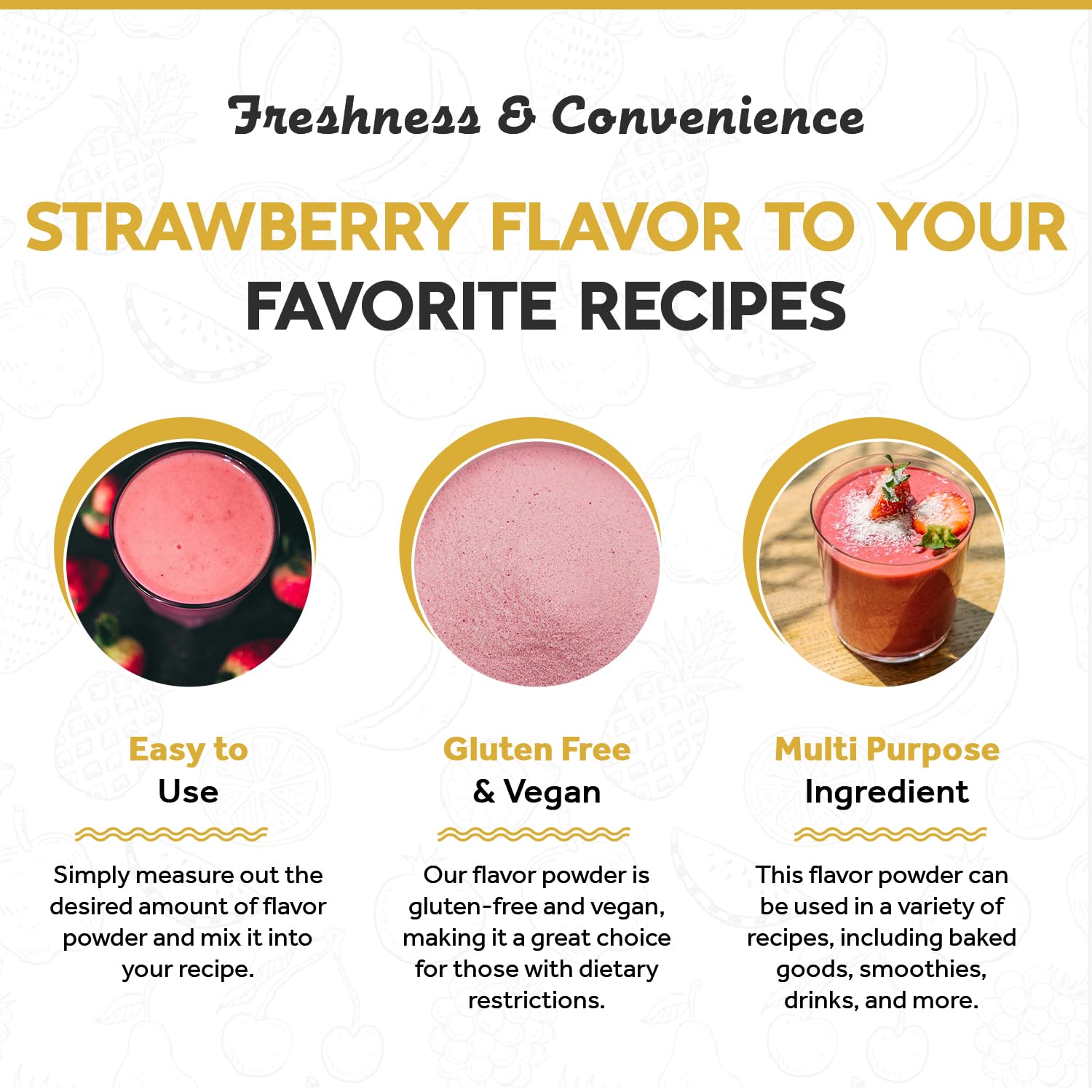 - ๐๐๐ฌ๐ฒ ๐ญ๐จ ๐ฎ๐ฌ๐: Simply measure out the desired amount of Strawberry flavor powder and mix it into your recipe. No need to chop, grind, or blend Strawberry , as this powder provides all the nutty flavor you need in a convenient form.
