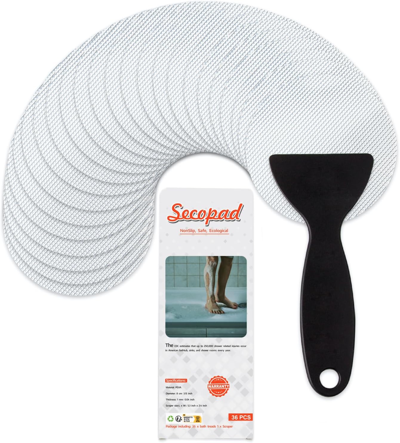 36PCS Non-Slip Bathtub Stickers, Safety Bathroom Tubs Showers Treads Adhesive Decals Scraper