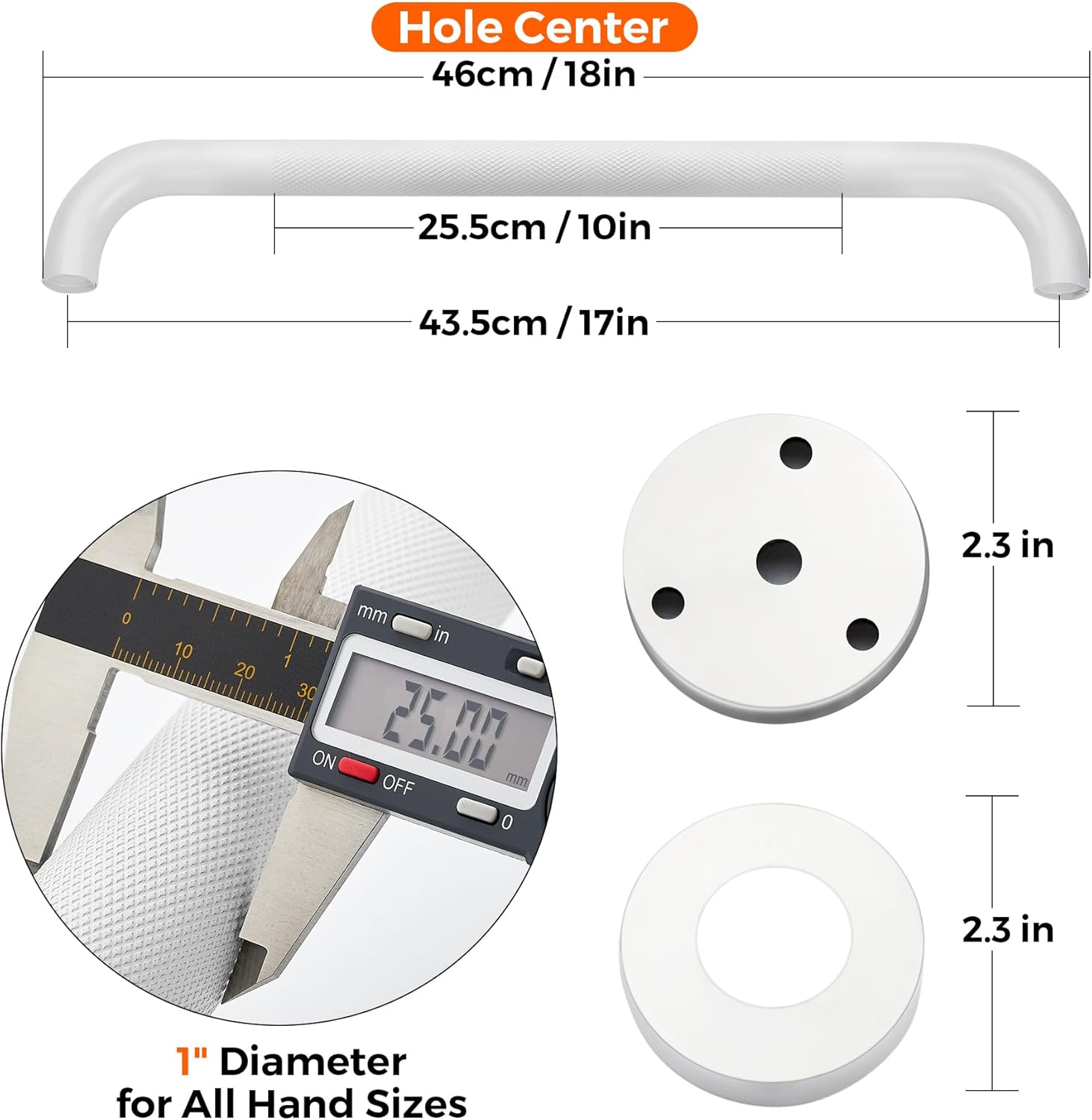 Grab Bars for Shower, 1 Pack 18-Inch Anti Slip Shower Handles for Elderly, Safety Shower Grab Bar, Stainless Steel Handicap Grab Bars for Bathroom (White 1" Diameter)