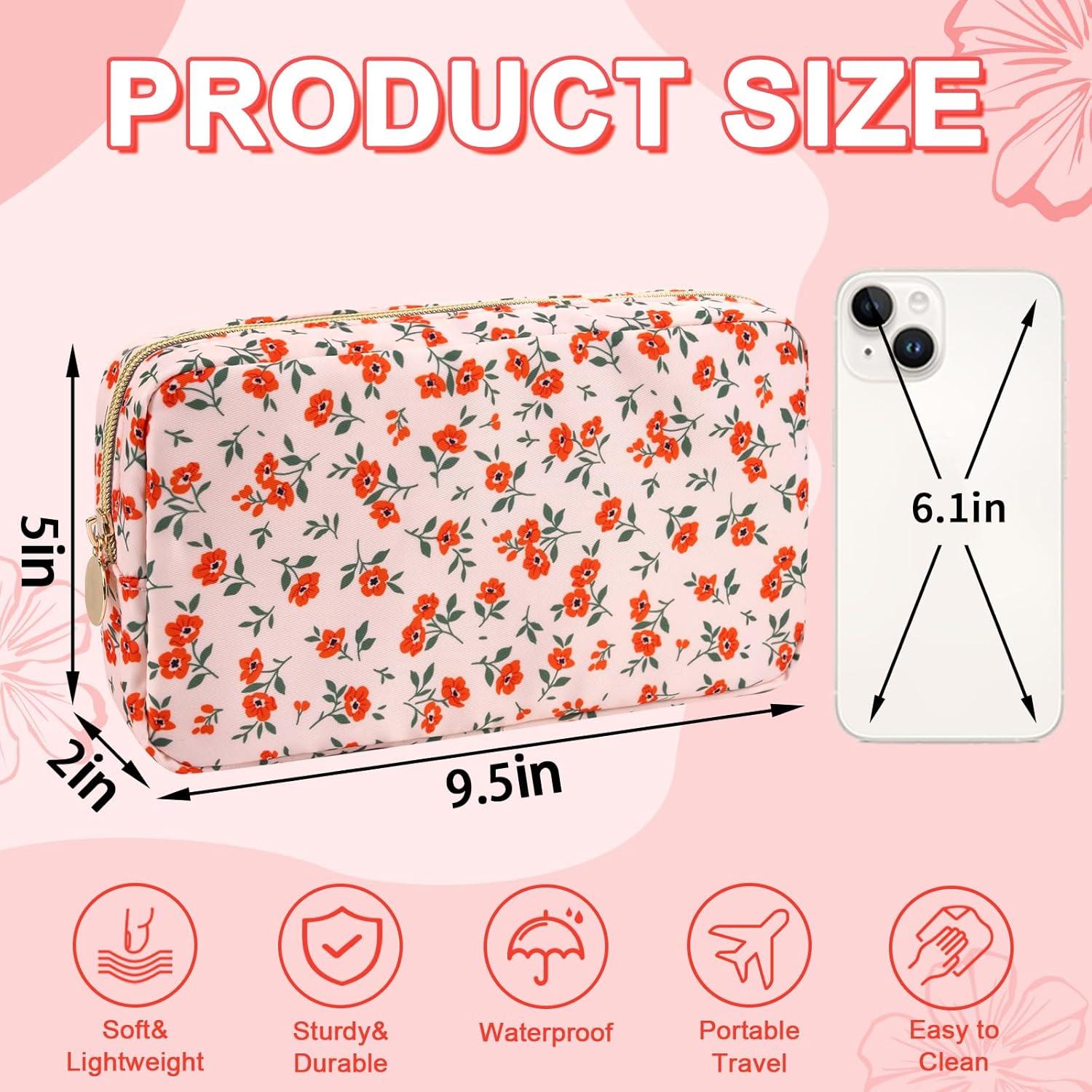 - 【Superior Quality】The floral makeup bag is made of lightweight and durable high quality nylon. It is waterproof and easy to clean, helping to protect your cosmetics and toiletries from water spill accidents.
