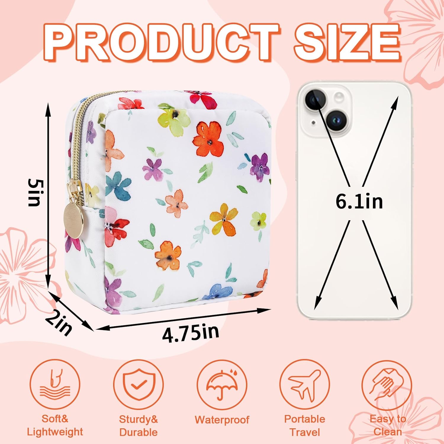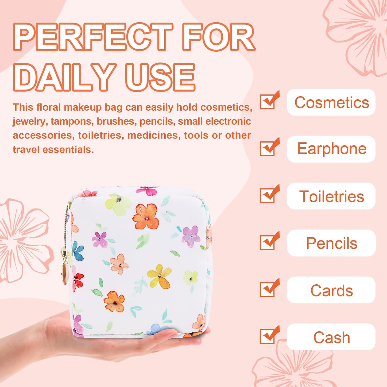 Waterproof Mini Floral Makeup Bag Pouch for Purse,Nylon Flower Cosmetic Travel Bag Small Preppy Toiletry Organizers for Women Girl,Cute Zipper Pouch Coin Purse for Work(Mini Colorful-Flowers)