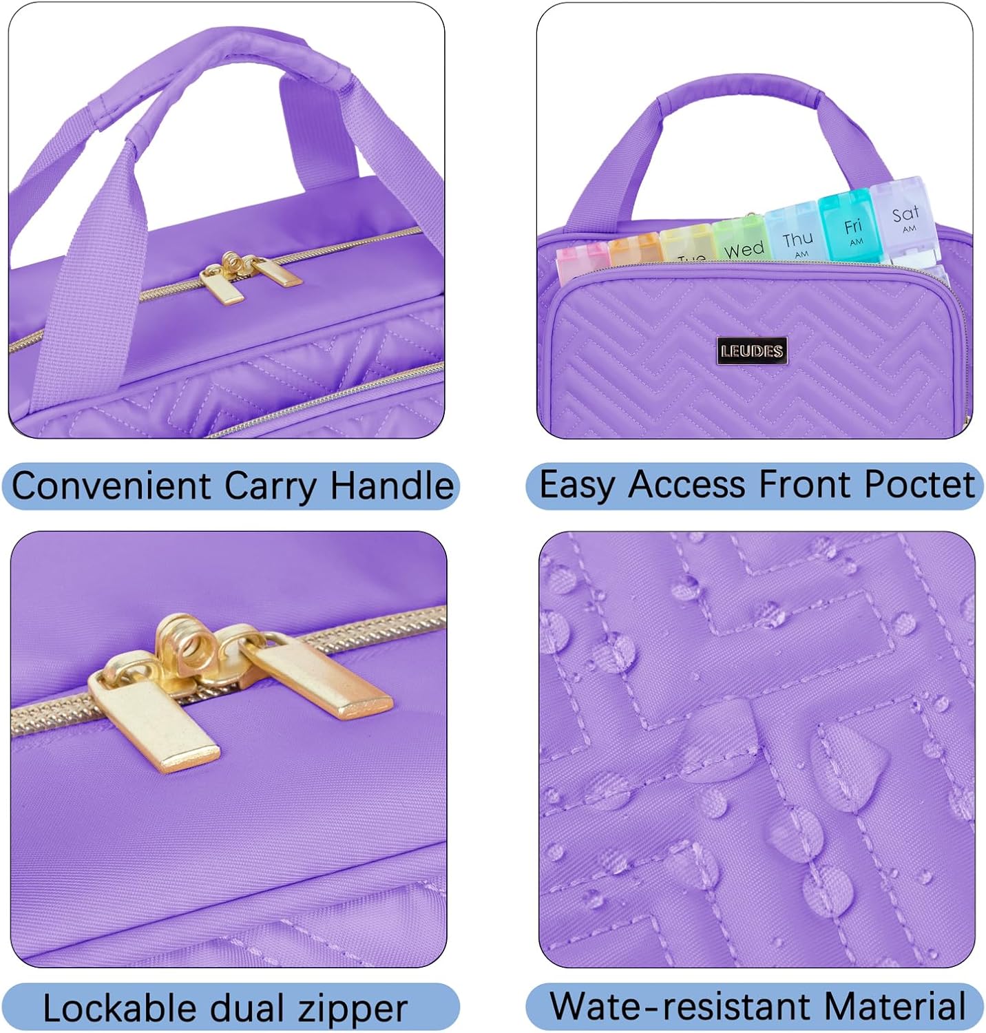 Leudes Travel Pill Bottle Organizer,Medicine Organizer and Storage,Home Medication Bag, Cases,Carrier for Pills,Vitamin,Fish Oil,Supplements for Women and Men (Medium, Purple)