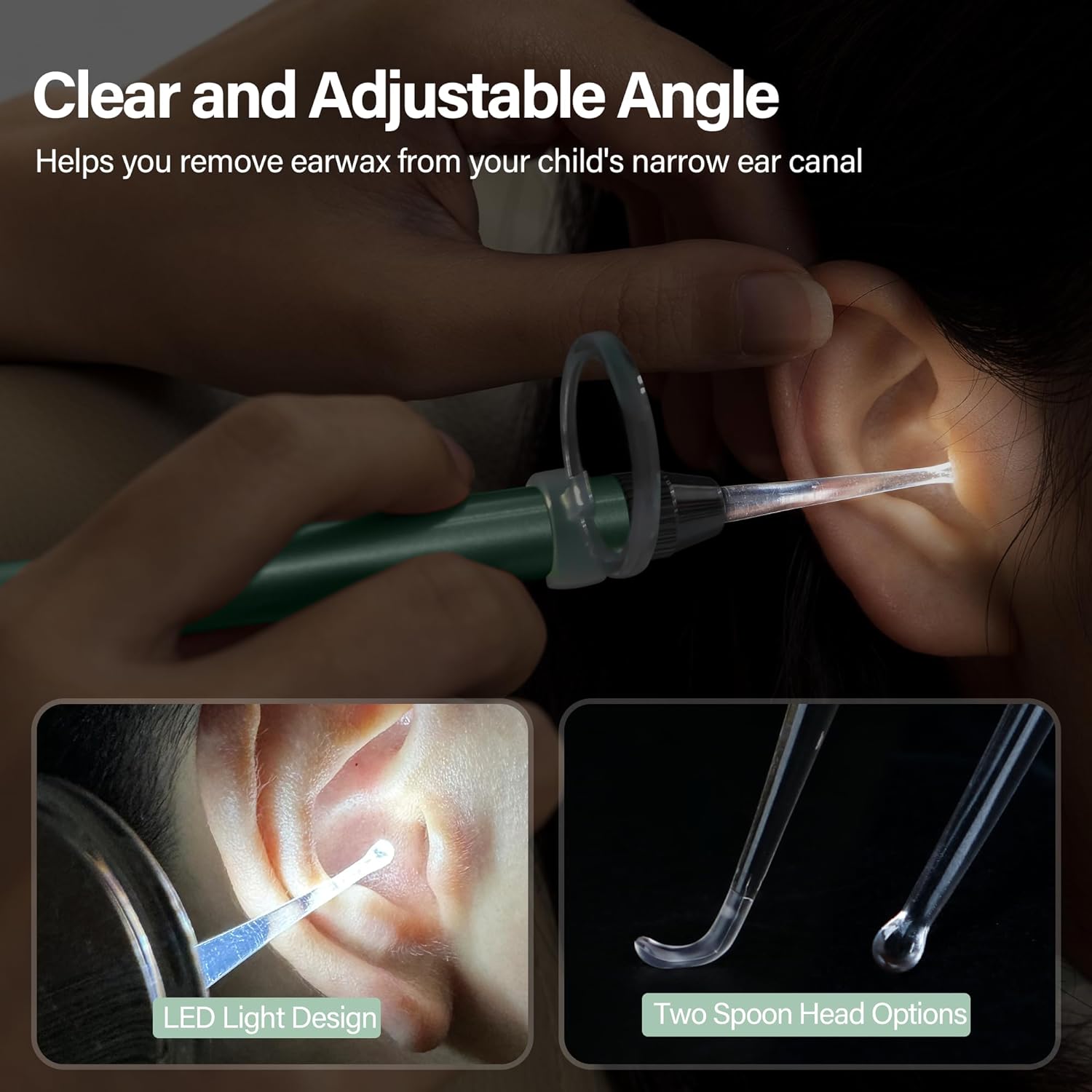 - 【SUITABLE FOR ALL AGES】-The kit comes with LED lights and 4 ear scoops, which also comes with two silicone ear scoops and a 2x magnifying glass to make it easier to see the ear canal, and its soft rounded scoop tips are ideal for ear wax removal for kids and adults. Our ear tweezers with light effectively treat both dry and wet earwax.