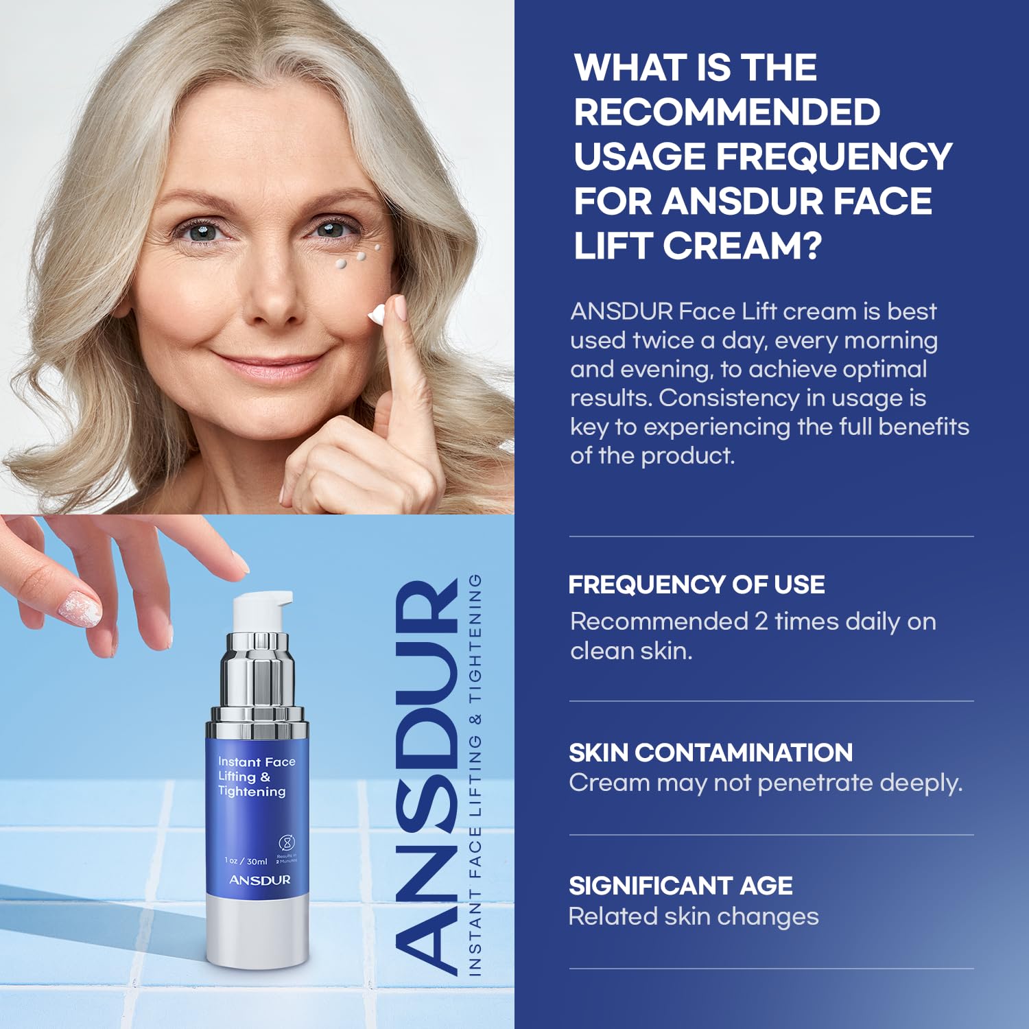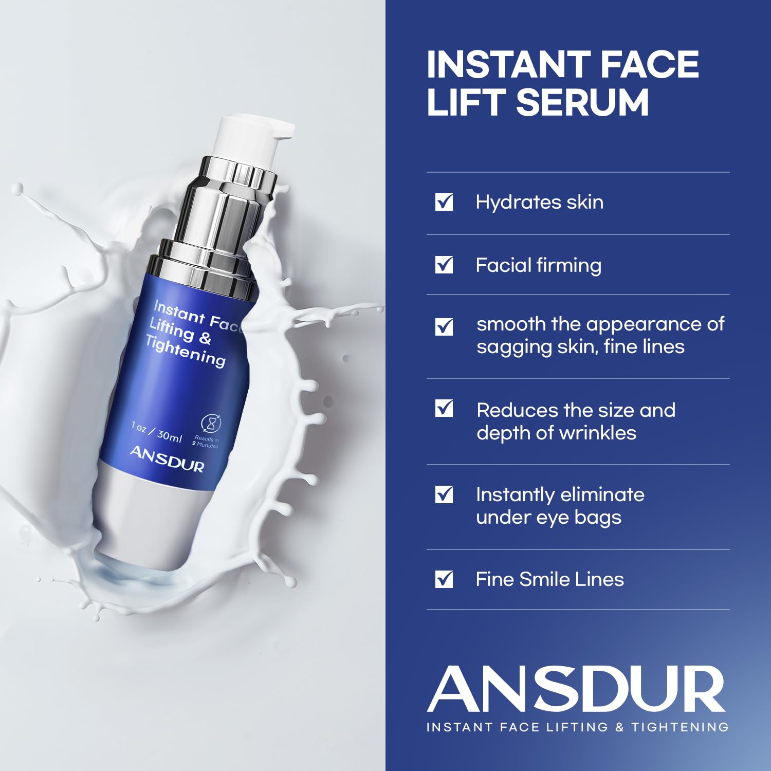 - Skin Tightening Cream for Face: Our instant face tightening and lifting cream is for the eyes, forehead, fine lines and neck. Specially formulated to address sagging skin, facial wrinkles, eye bags, expression lines, crow's feet, and more. Instant under eye serum works to smooth and rejuvenate your skin. And moisturize, smooth, and firm with our instant face cream.